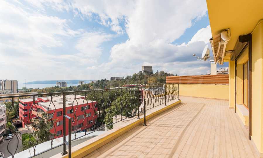 Представляем вашему вниманию четырёхкомнатную квартиру с видом на море и просторной террасой в тихом районе, в квартале «Бриз». Этот квартал славится своей спокойной атмосферой, прекрасной панорамой и чистым воздухом. «Бриз» зарекомендовал себя как престижный район и приобретает всё большую популярность как среди болгар, так и среди иностранцев. Непосредственный доступ к важнейшей транспортной артерии, соединяющей центр Варны с летними курортами – бульвару «Князь Борис I», обеспечивает лёгкий и быстрый доступ во все точки города. Рядом находятся школы, рестораны, кафе, продуктовый магазин, остановка общественного транспорта и парк «Морской сад», а также самые популярные варненские пляжи.