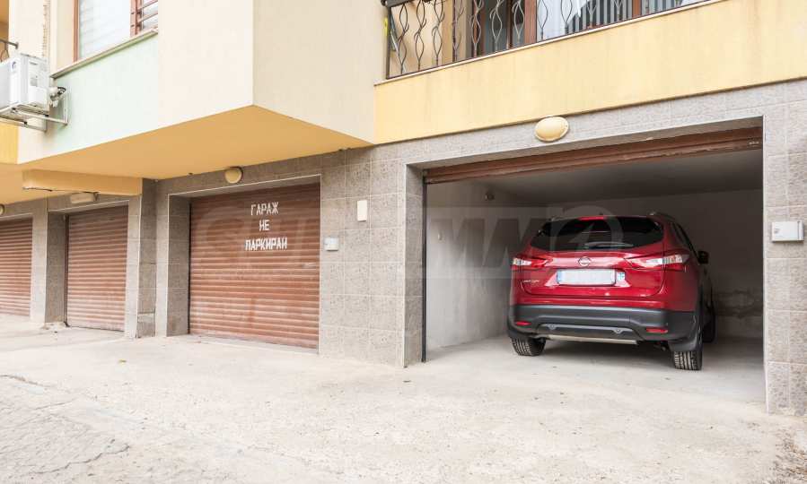 В квартире есть гараж и открытое парковочное место с манёвренной площадкой на участке. Гараж оснащён автоматическими воротами, сигнализацией, раковиной и электричеством и расположен на первом этаже.
