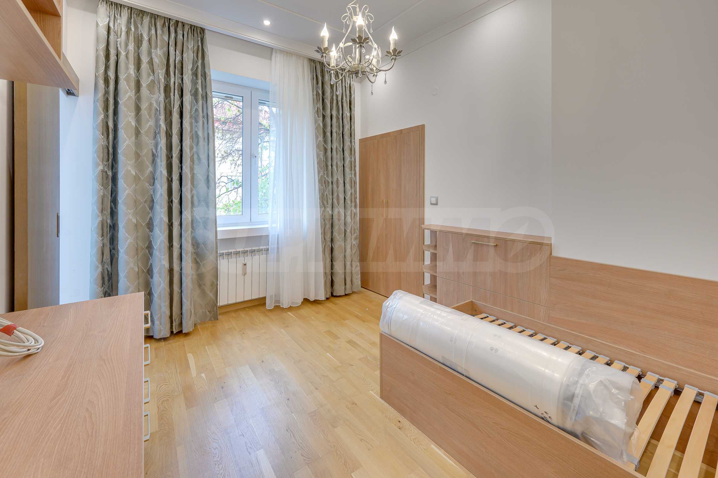 Квартира площадью 116 кв. м после капитального ремонта ждёт своих первых жильцов. Она расположена на первом этаже над землёй в здании с аутентичным фасадом и прекрасно сохранившимся подъездом, сохранившим дух старинной аристократической Софии.