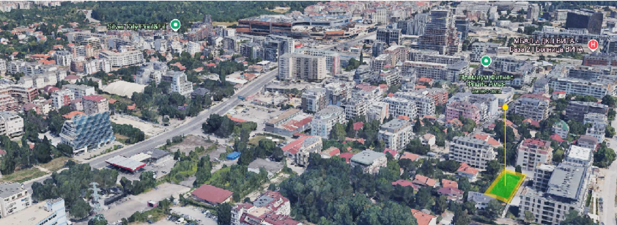 Расположение: участок расположен на тихой внутренней улице с заездом через тупик, что гарантирует приватность и безопасность, одновременно обеспечивая удобное сообщение с основными бульварами и инфраструктурой Лозенец и Крыстовой Вады.
