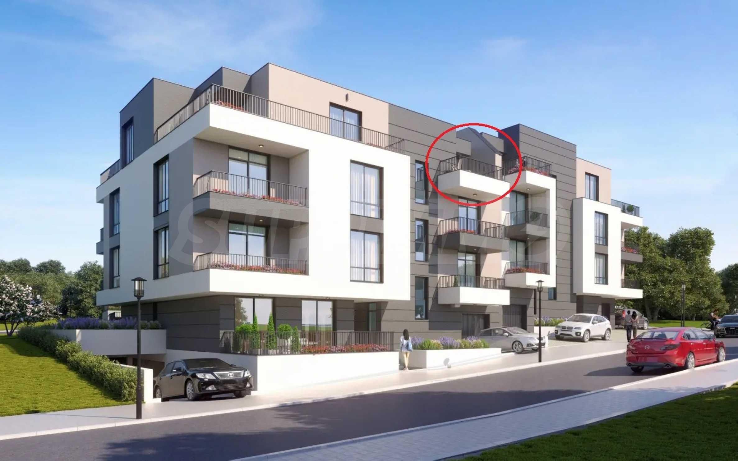 Здание расположено на 4 уровнях с просторными студиями и однокомнатными квартирами площадью от 43,54 кв. м до 117,30 кв. м. Из окон квартир на верхних этажах открывается панорамный вид на город, море и окружающую зелень.
