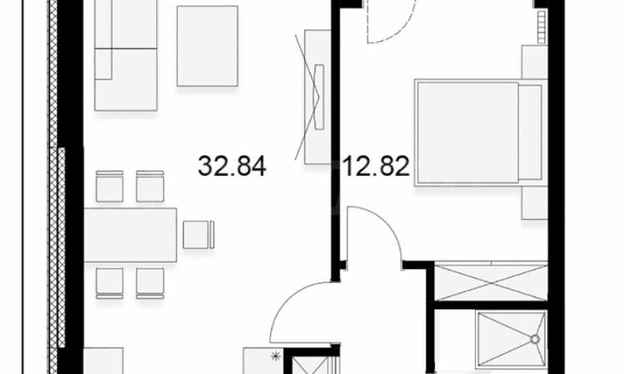 • Планировка: просторная гостиная с кухней, уютная спальня, ванная комната с туалетом и терраса;