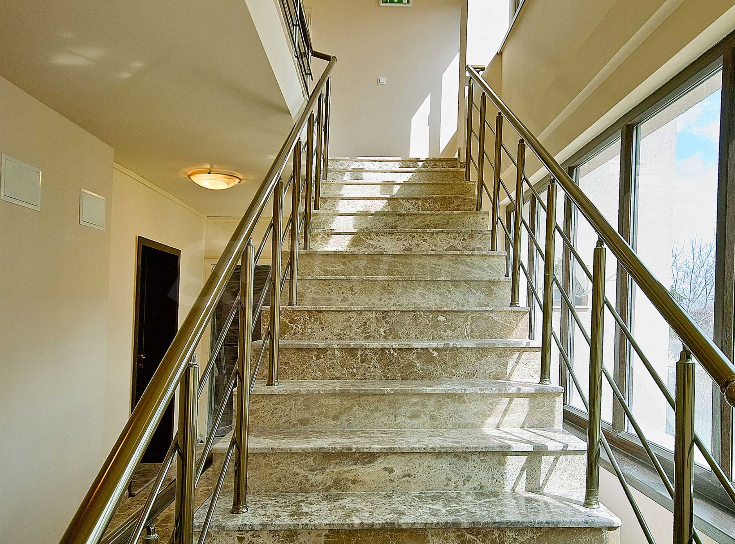 Недвижимость расположена на первом этаже в ухоженном кирпичном здании с роскошными помещениями общего пользования.