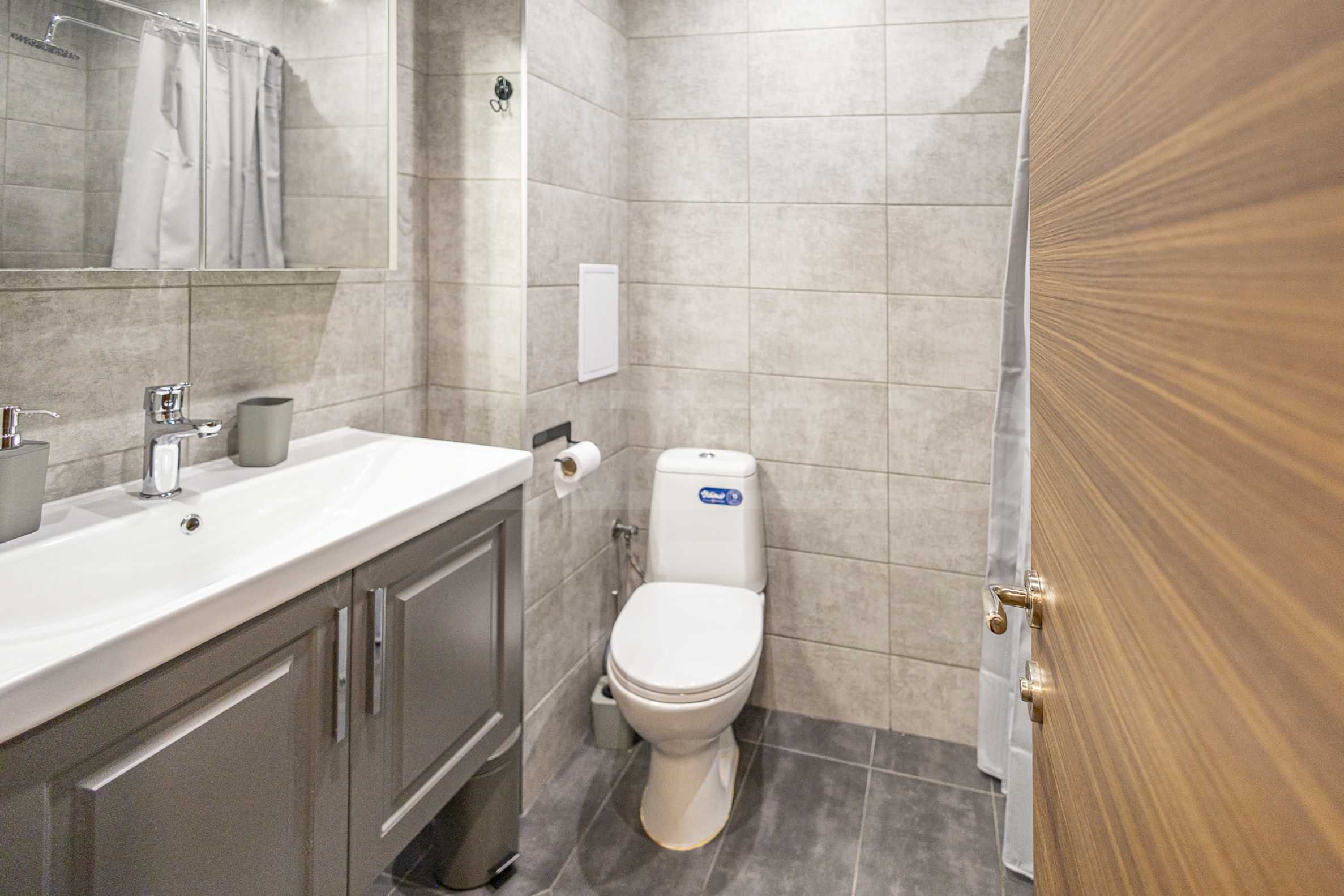 Квартира уютная и стильно обставлена, есть все необходимое для проживания, включая стиральную машину с сушкой, посудомоечную машину и пылесос.
