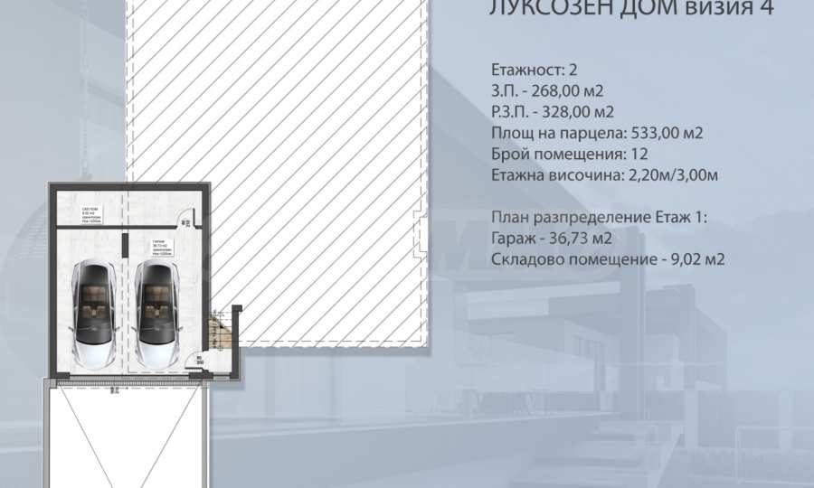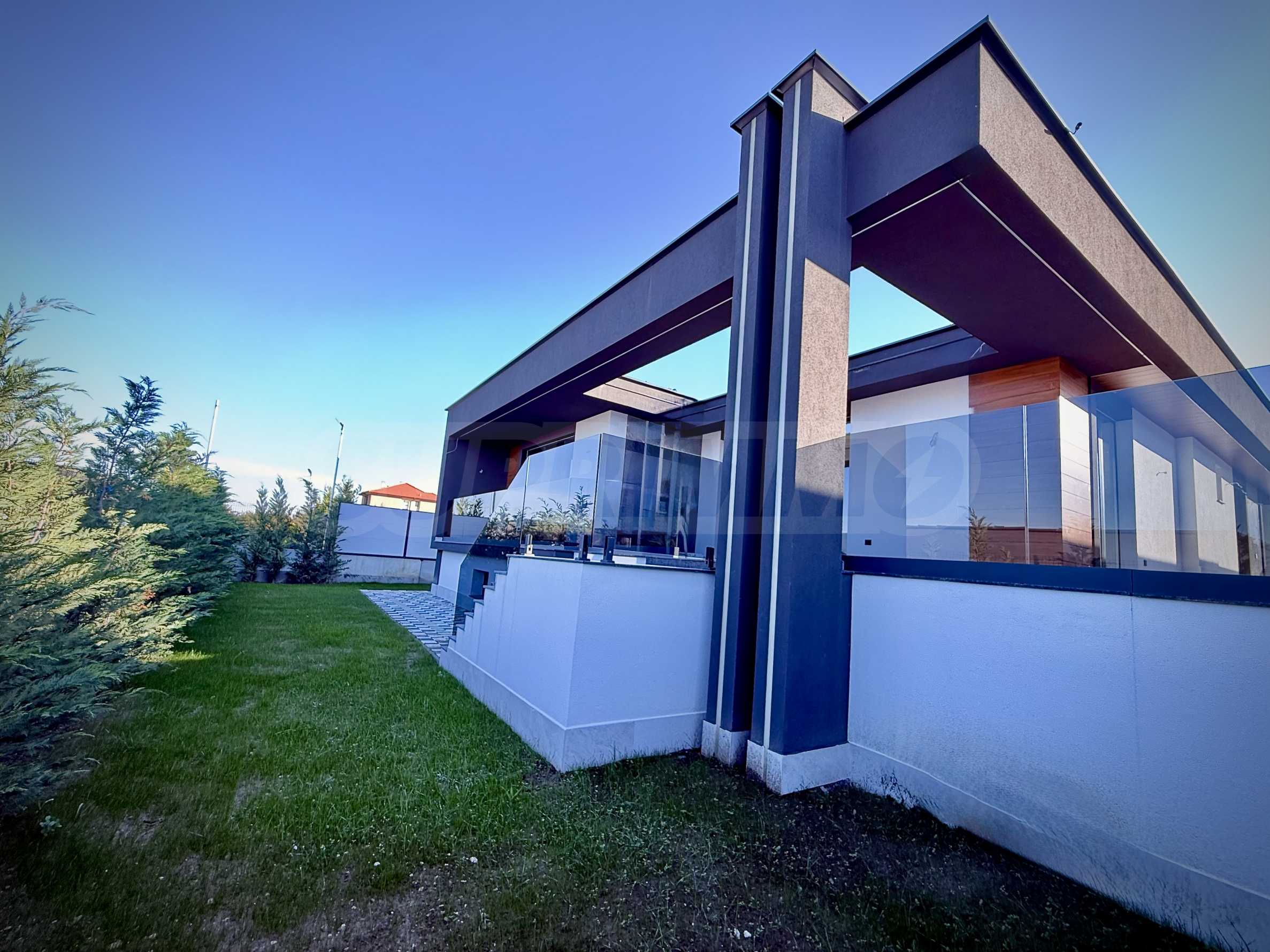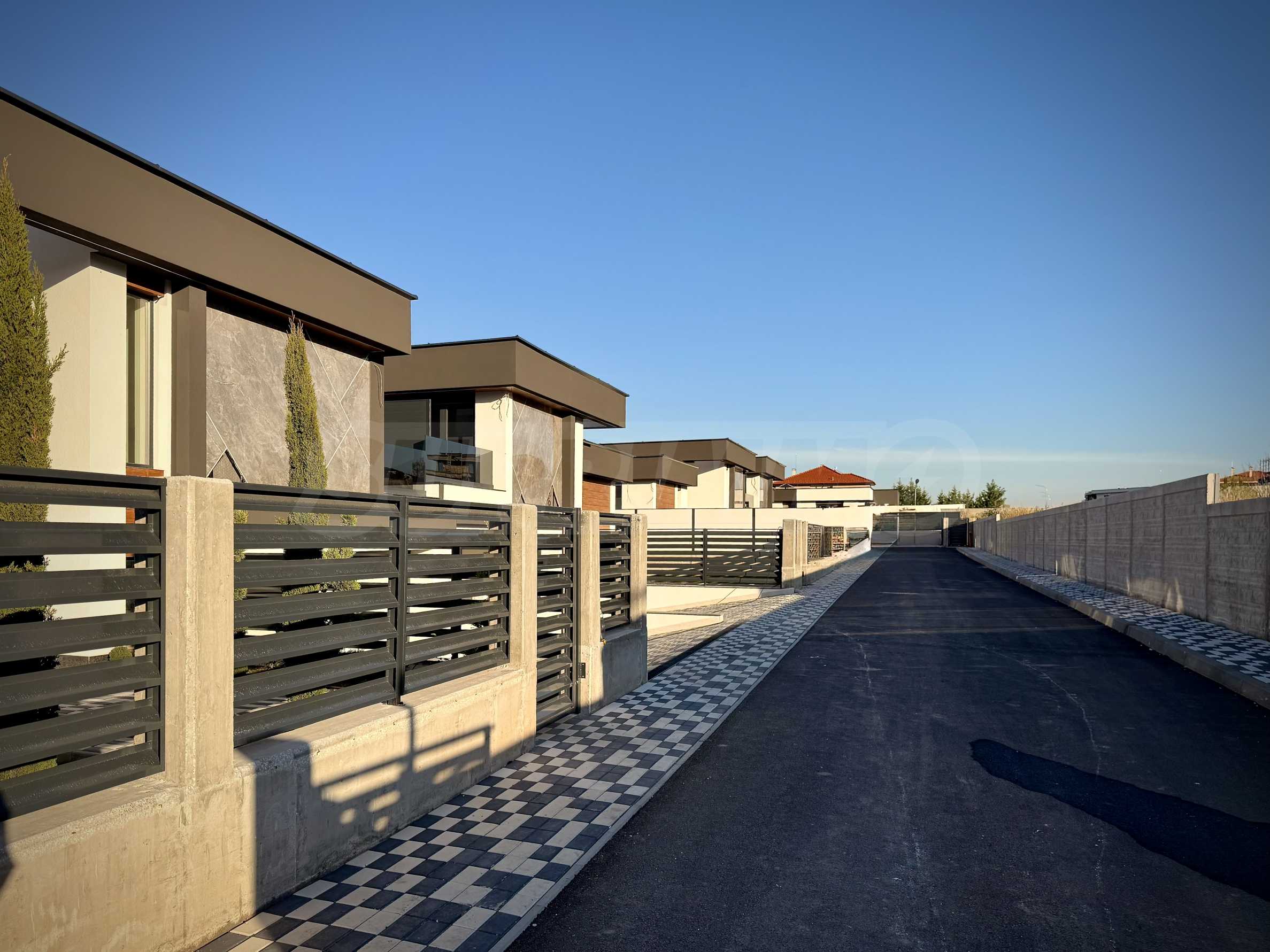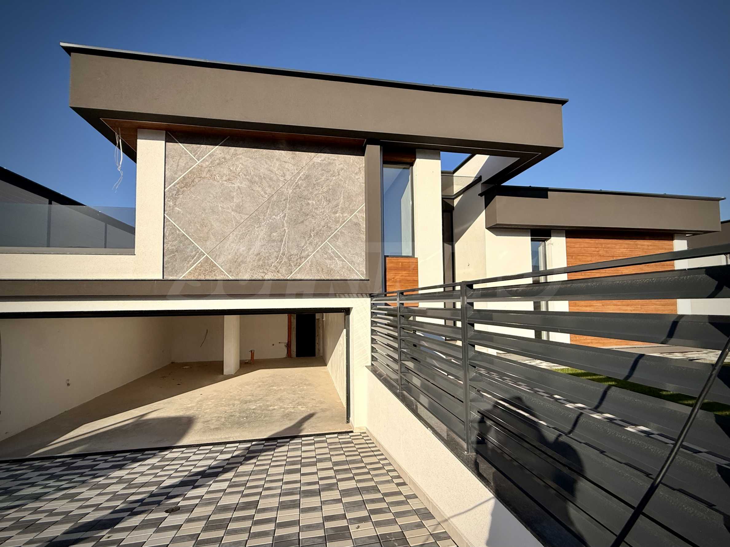 Дом общей площадью 328 кв.м с дополнительным подземным этажом около 60 кв.м расположен в благоустроенном и полностью готовом комплексе в Белаштице. Участок площадью 533 кв.м с благоустроенным и озеленённым двором, автоматической системой полива и толстыми заборами для обеспечения приватности. Дом разделён на три надземных этажа с тремя спальнями, каждая с собственной ванной комнатой, большой гостиной с обеденной зоной и выходом на панорамную веранду.