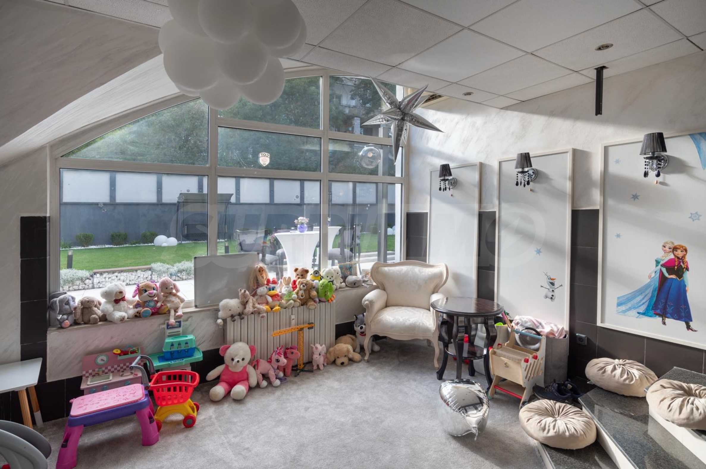 На территории расположены три отдельных склада, профессиональная барная меблировку и два санузла. Полы выложены гранитной плиткой. Отопление осуществляется от системы центрального отопления, а для охлаждения и создания дополнительного комфорта в помещениях установлены кондиционеры.