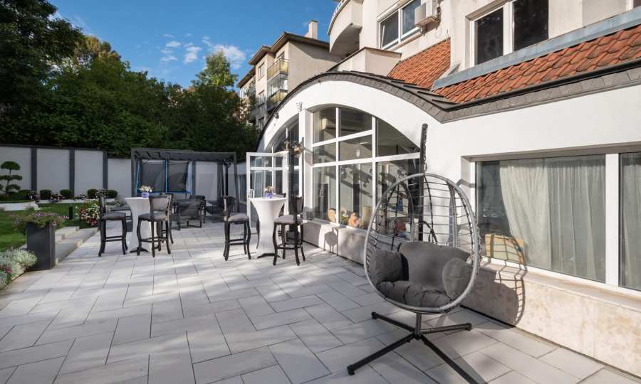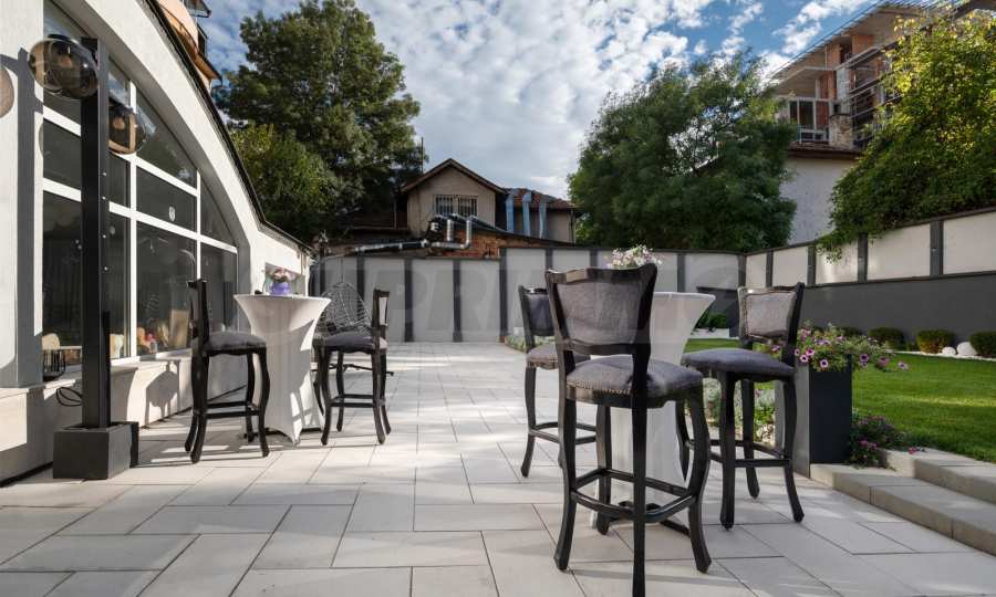 К ресторану примыкает двор площадью 500 кв. м, подходящий для обустройства летнего сада, проведения мероприятий на открытом воздухе или других дополнительных коммерческих мероприятий.