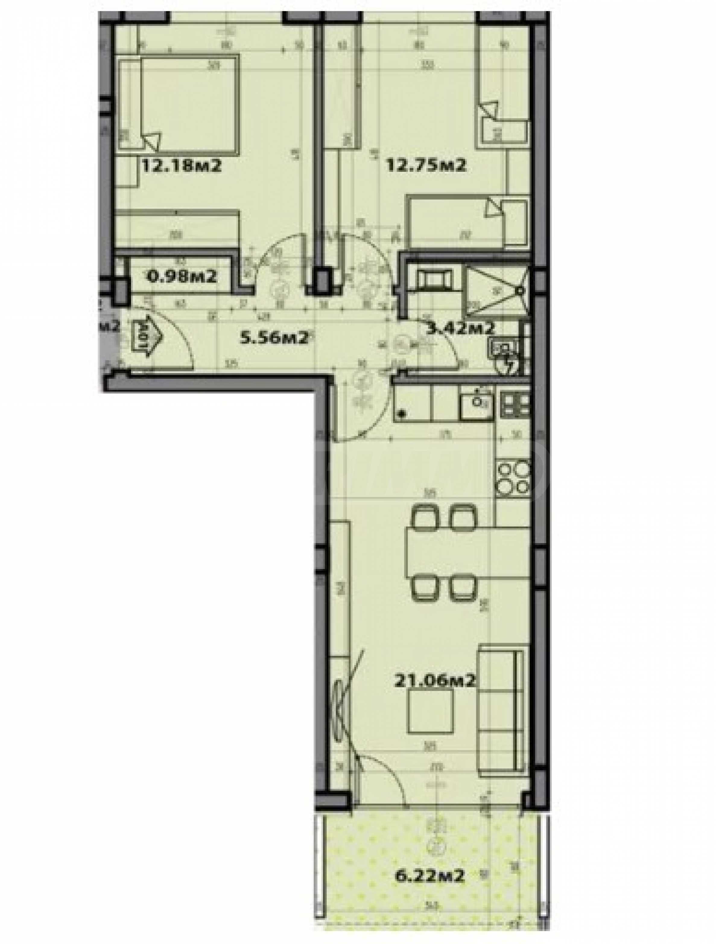 Квартиры сдаются в состоянии, готовом к заселению в соответствии с болгарскими строительными нормами, со штукатуркой и стяжкой.