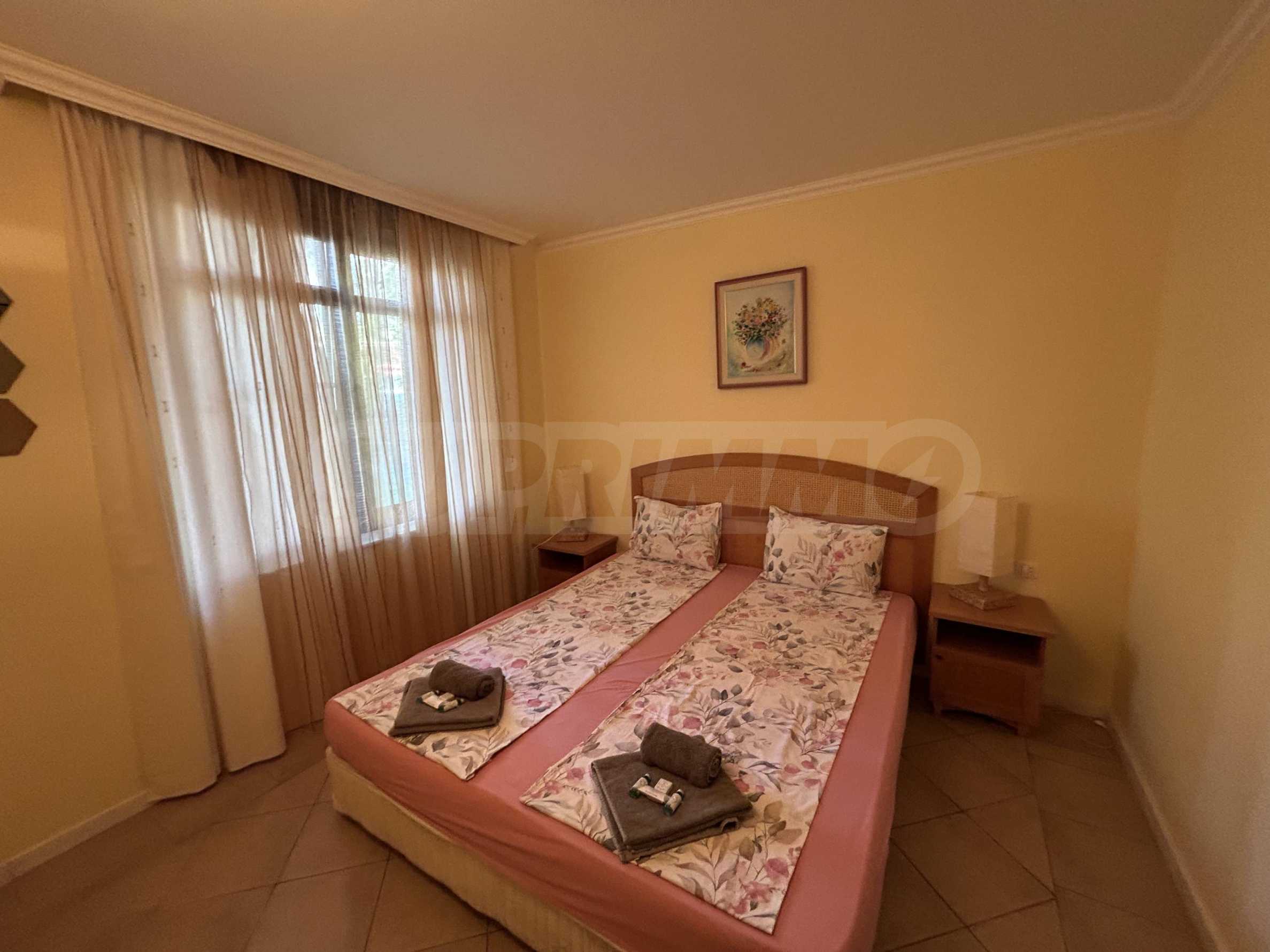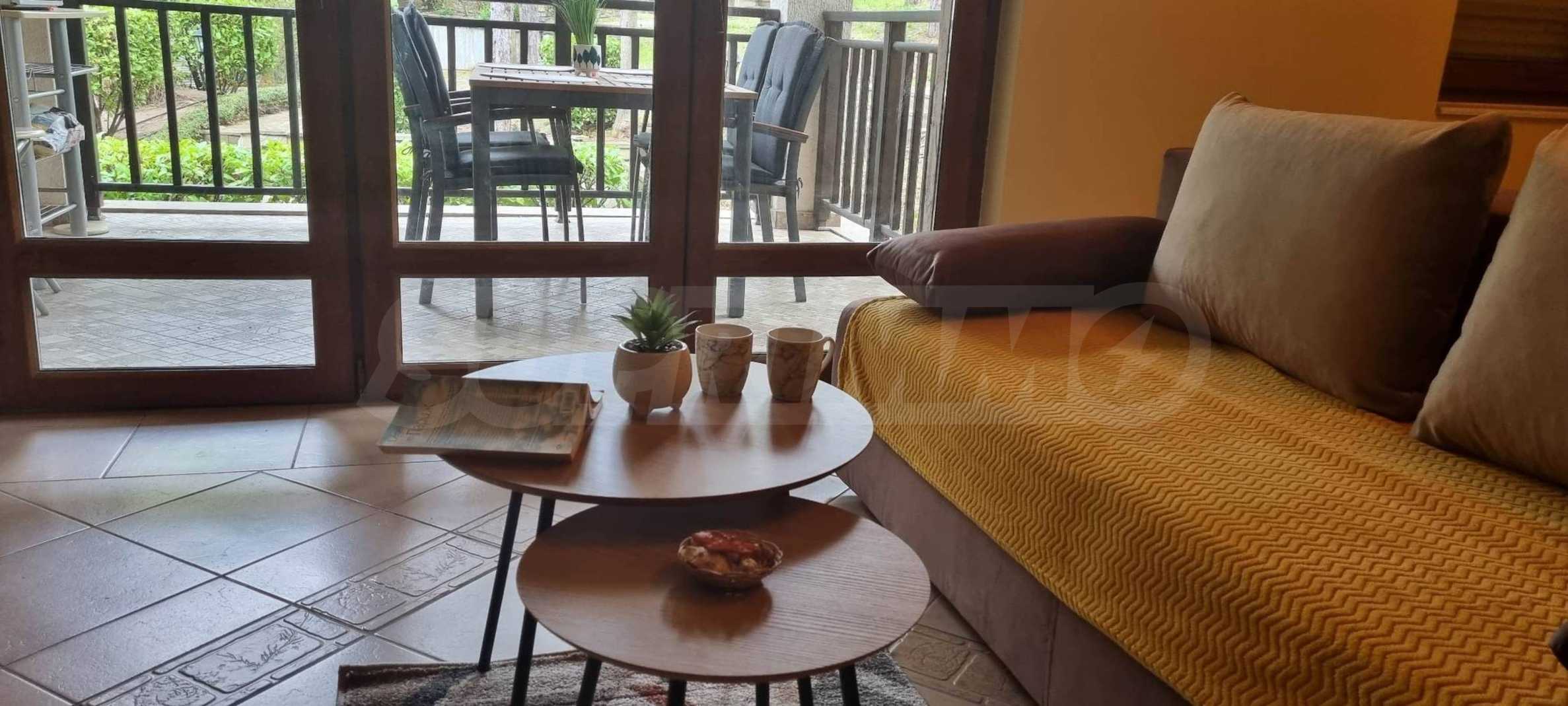 Представляем на продажу комфортную двухкомнатную квартиру, переделанную в функциональную трехкомнатную, расположенную в элитном прибрежном комплексе с бассейнами и собственным парком, всего в 2 км от города Созополь.