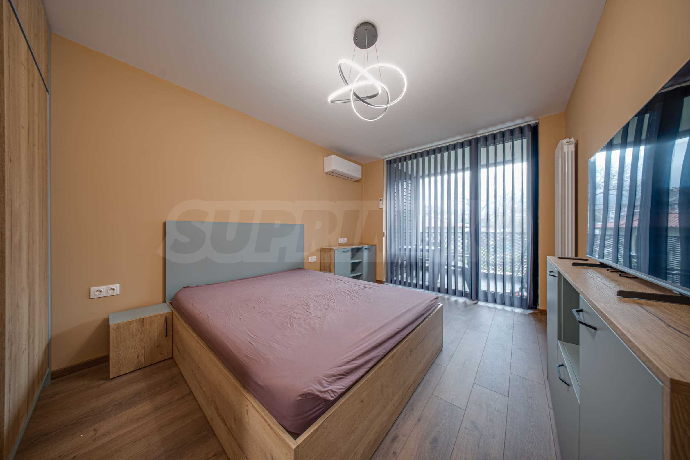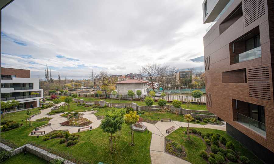 Квартира расположена на 3 этаже, окна выходят на юг, из окон открывается вид на гору Витоша и внутренний двор. Отопление газовое, установлены два кондиционера.