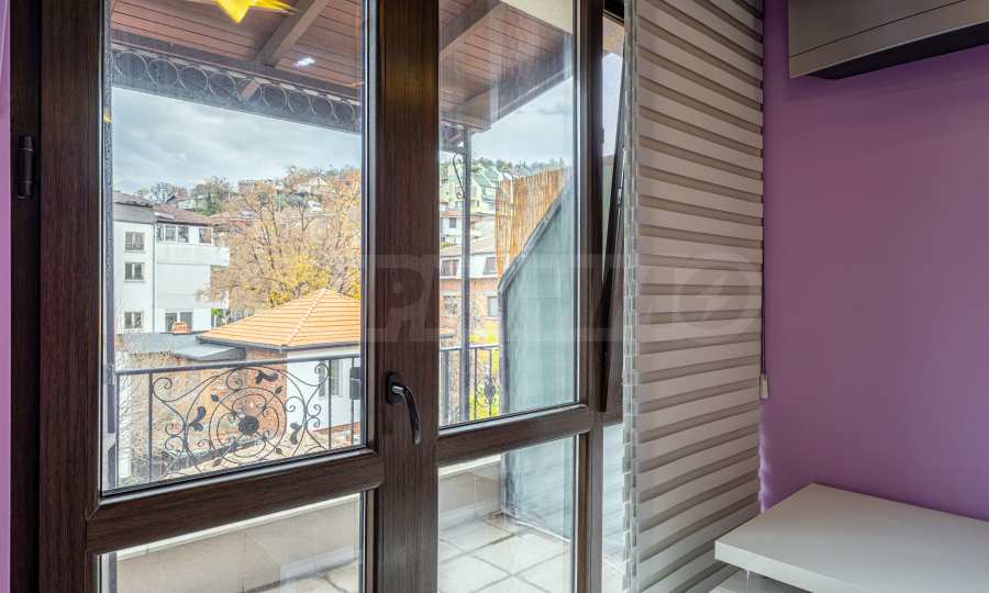 У подножия парка Бунарджик и всего в нескольких минутах ходьбы от центральных улиц Пловдива находится элегантная трехкомнатная квартира площадью 102 кв. метров, полностью меблированная, расположенная на 4-м этаже из 5 в элитном здании с уникальным видом, лифтом и безупречными общими помещениями.