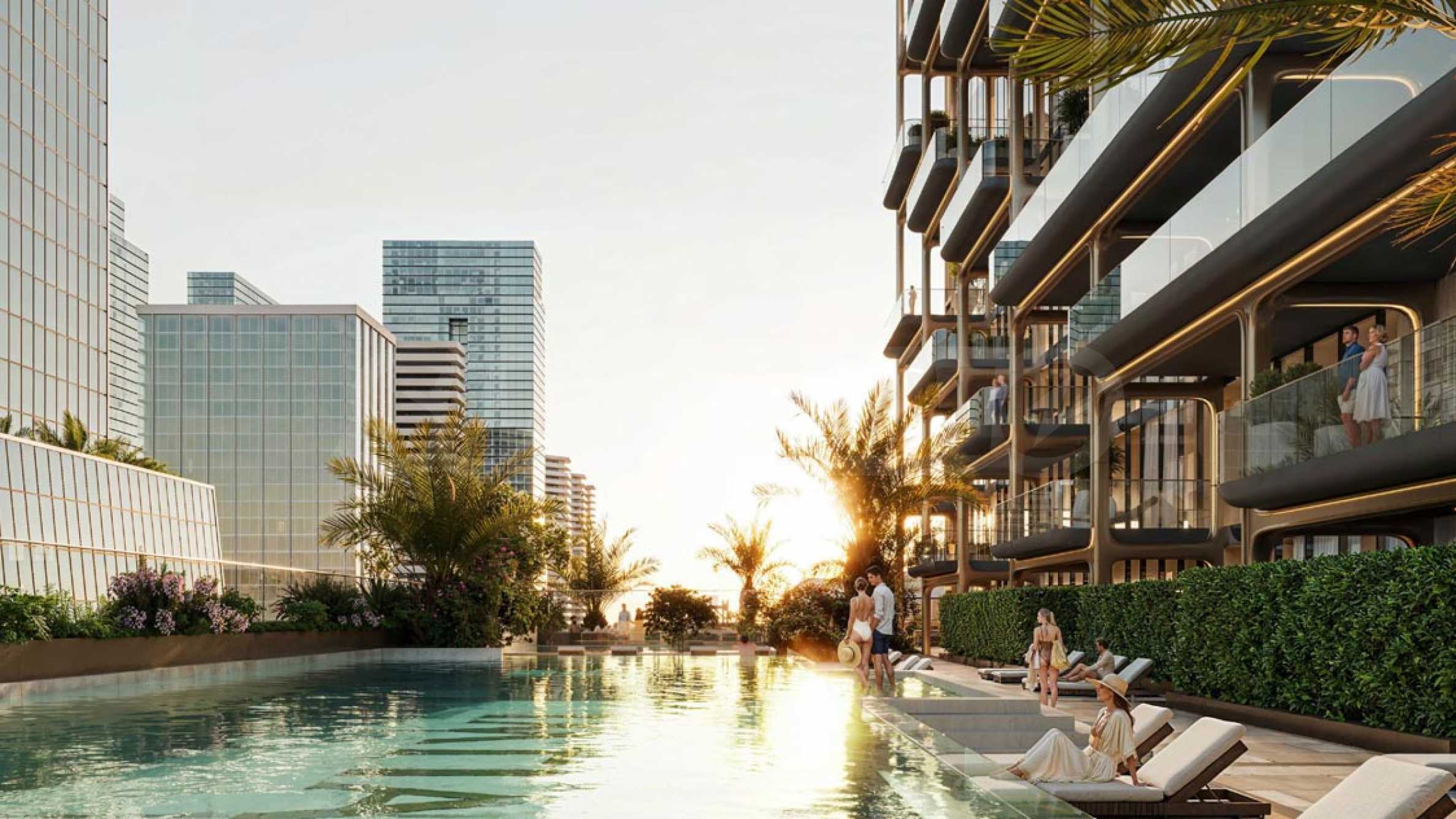 Центр Дубая, центр города, находится всего в 15 минутах езды, что делает ежедневные поездки в основные деловые районы невероятно удобными. Неподалеку находятся такие знаковые места, как торговый центр Dubai Mall, Бурдж-Халифа и Пальма Джумейра, а международный аэропорт Дубая находится примерно в 16 км.