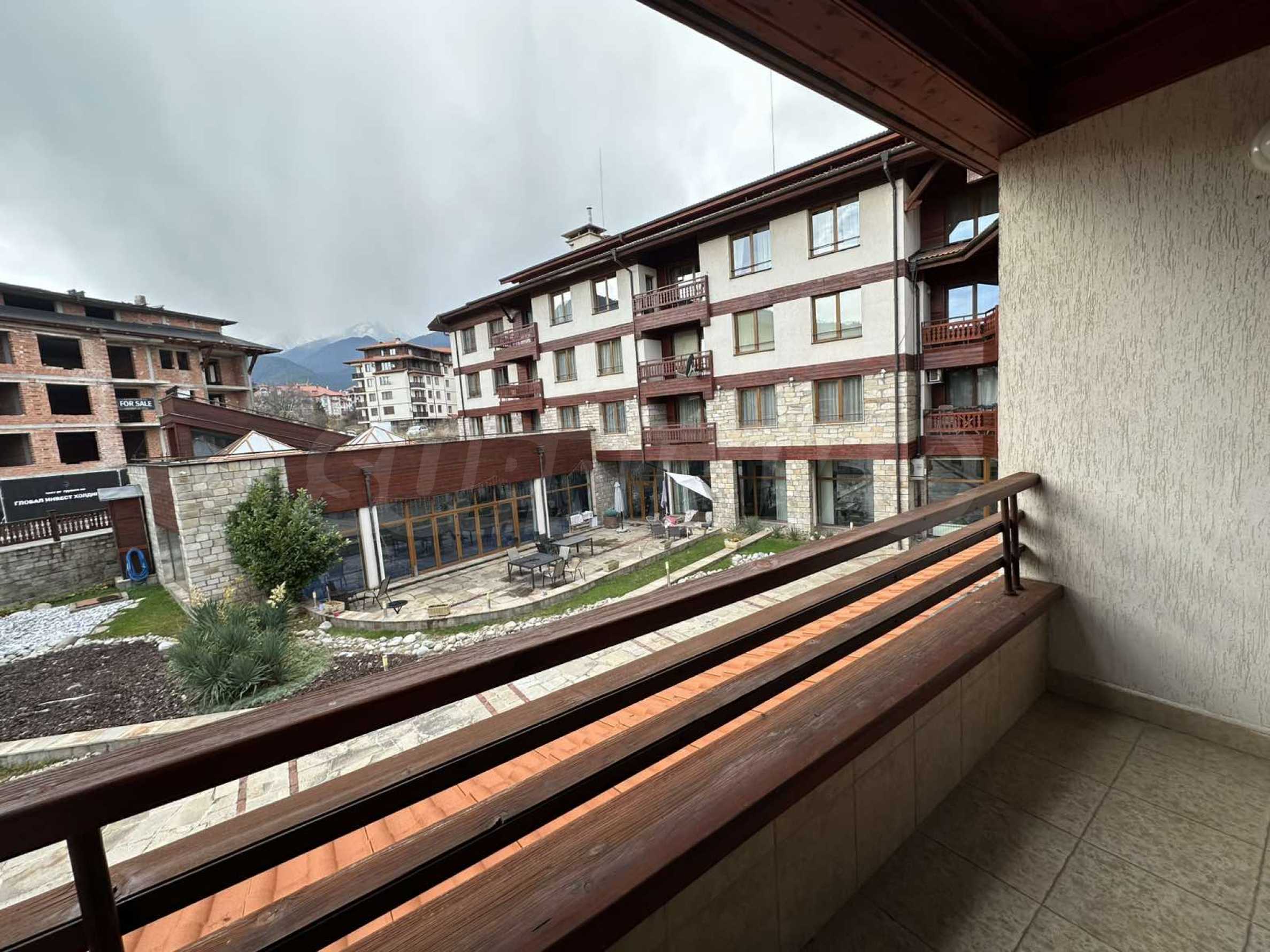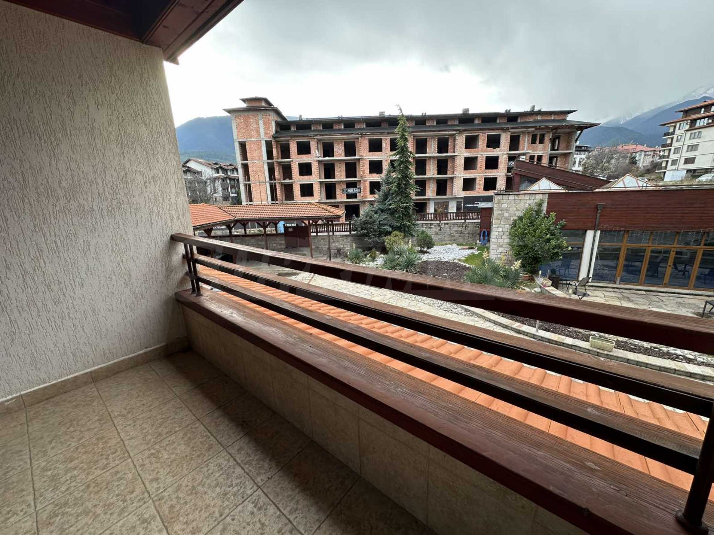 Из апартаментов открывается вид на внутренний двор комплекса и гору Пирин.