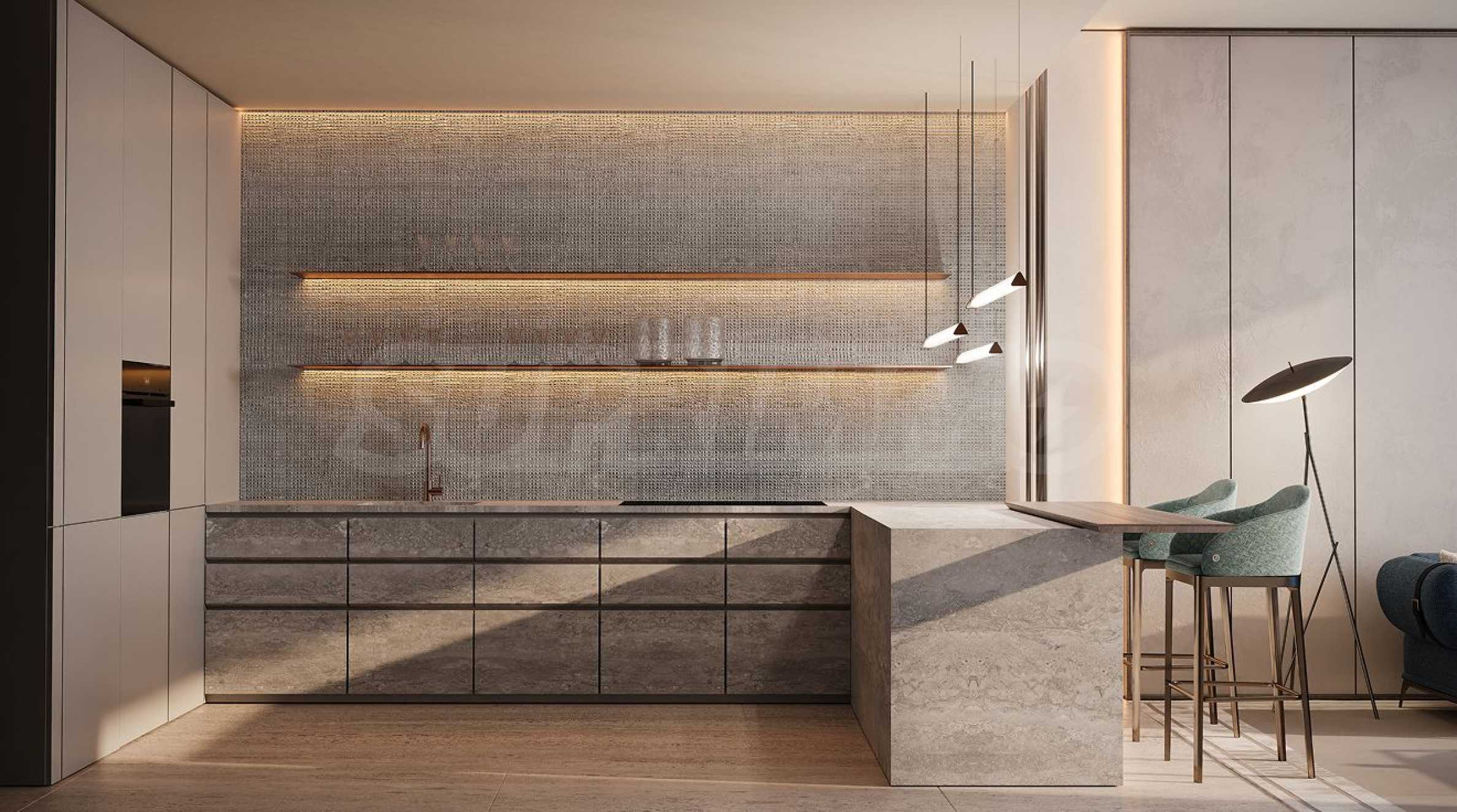 В некоторых апартаментах есть собственные панорамные бассейны на террасах, что создаёт ощущение погружения не просто в бассейн, а прямо в морские воды. Квартиры предлагаются с продуманной до мелочей планировкой, где гостиная искусно объединена с кухней и столовой, а каждая спальня имеет собственную гардеробную и ванную комнату.