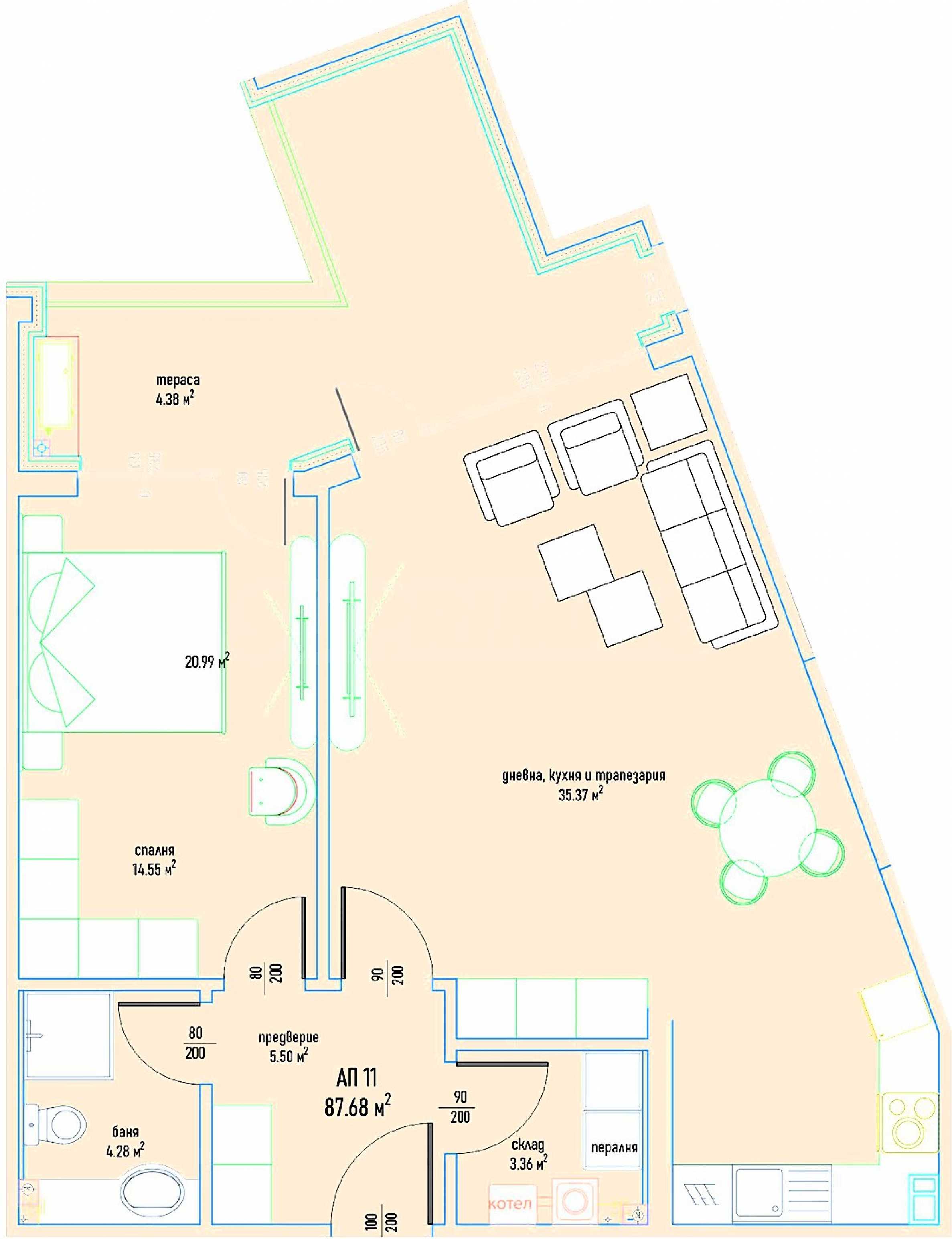 Представляем на продажу двухкомнатную квартиру в новом жилом комплексе, расположенном в самом сердце зелёной зоны площадью 10 акров в Софии, в квартале «Малинова долина». Расположение обеспечивает удобный доступ к Софийской кольцевой дороге, остановкам общественного транспорта, парку «Вартопо», «Американскому колледжу», Национальной спортивной академии «Васил Левски», торговому центру «РИНГ МОЛЛ» и всем районам города.