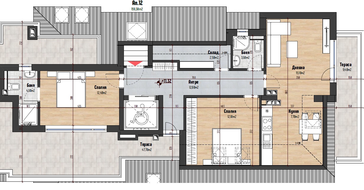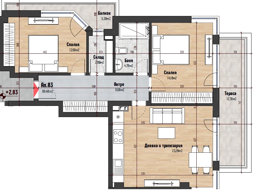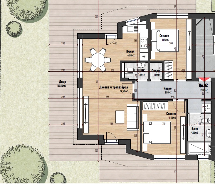•Площадь наименьшей доступной квартиры: 95,89 м2.;