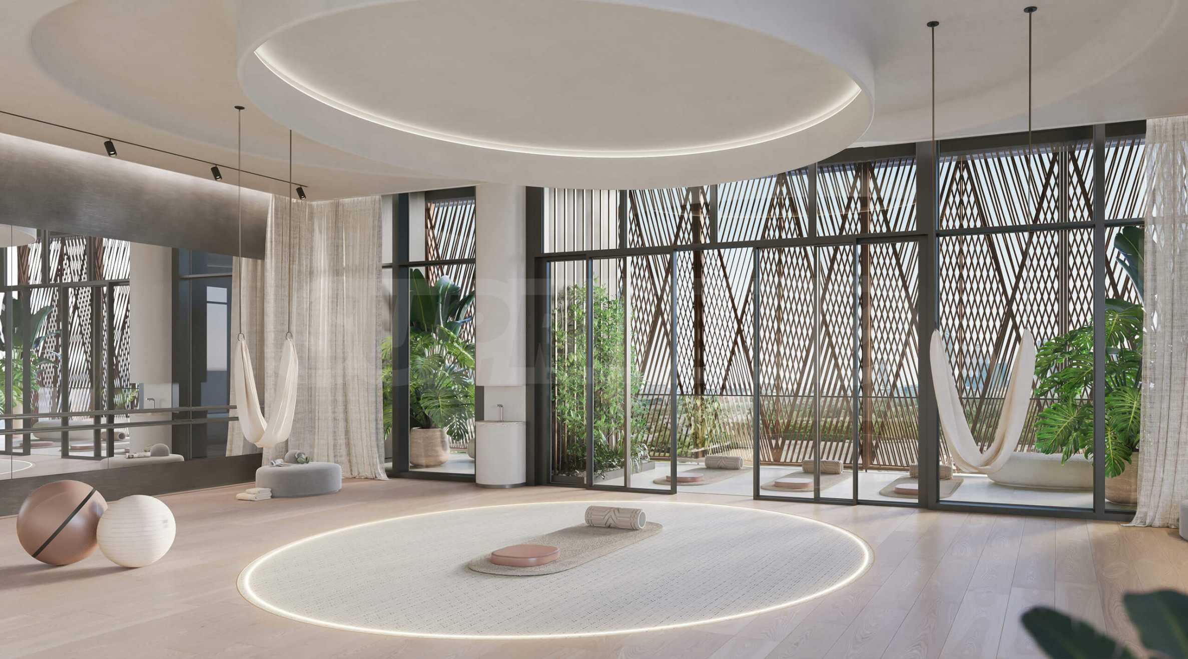 Весь этаж отведён для занятий физической активностью и релаксации. Здесь вы найдёте студию пилатеса, зал для йоги, скалодром, зону калистеники и студию спиннинга. Для восстановления после тренировок предусмотрены релаксационные бассейны и подогреваемые восстанавливающие кровати.