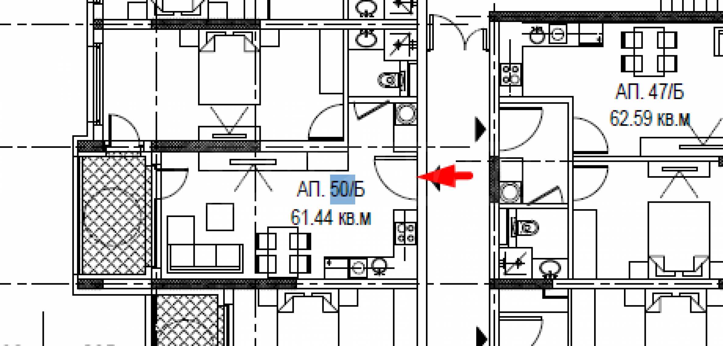 Квартира расположена на 3 этаже и имеет общую площадь 70,99 м2, жилую – 61,44 м2. На ней расположены: прихожая, ванная комната с туалетом, гостиная с кухней, терраса, одна спальня. Квартира сдается в готовом виде согласно BDS, с пятикамерными ПВХ-окнами Rehau, тройными стеклопакетами и бронированной входной дверью.