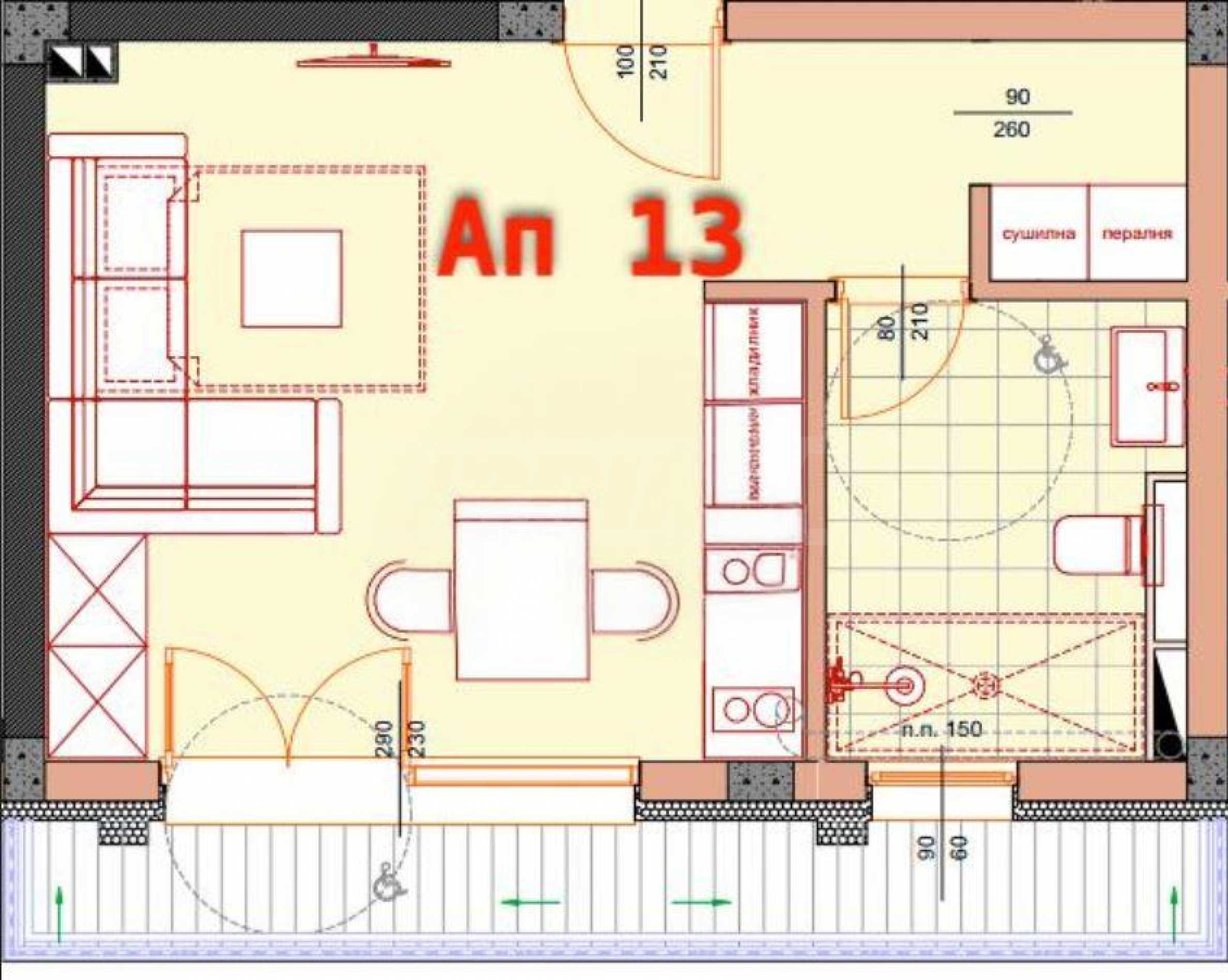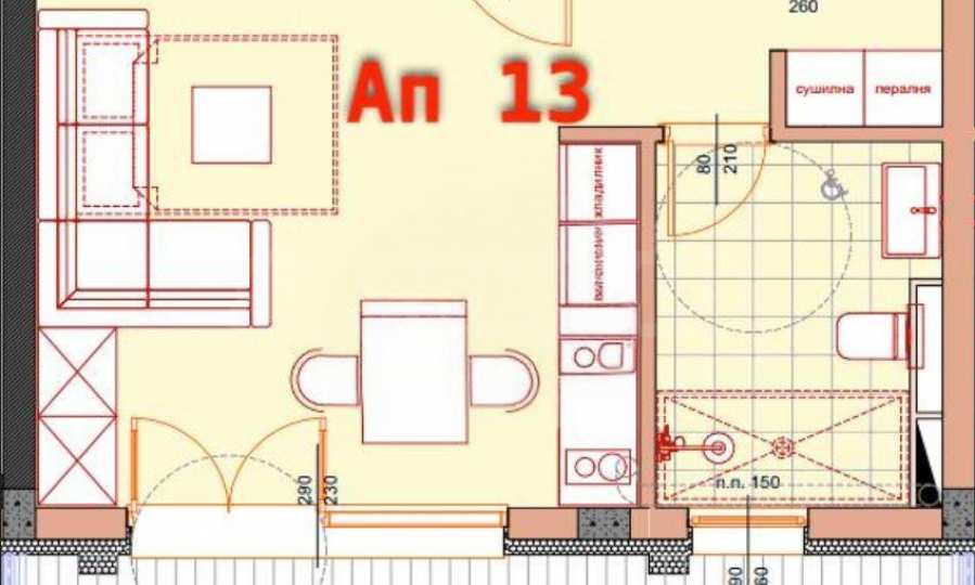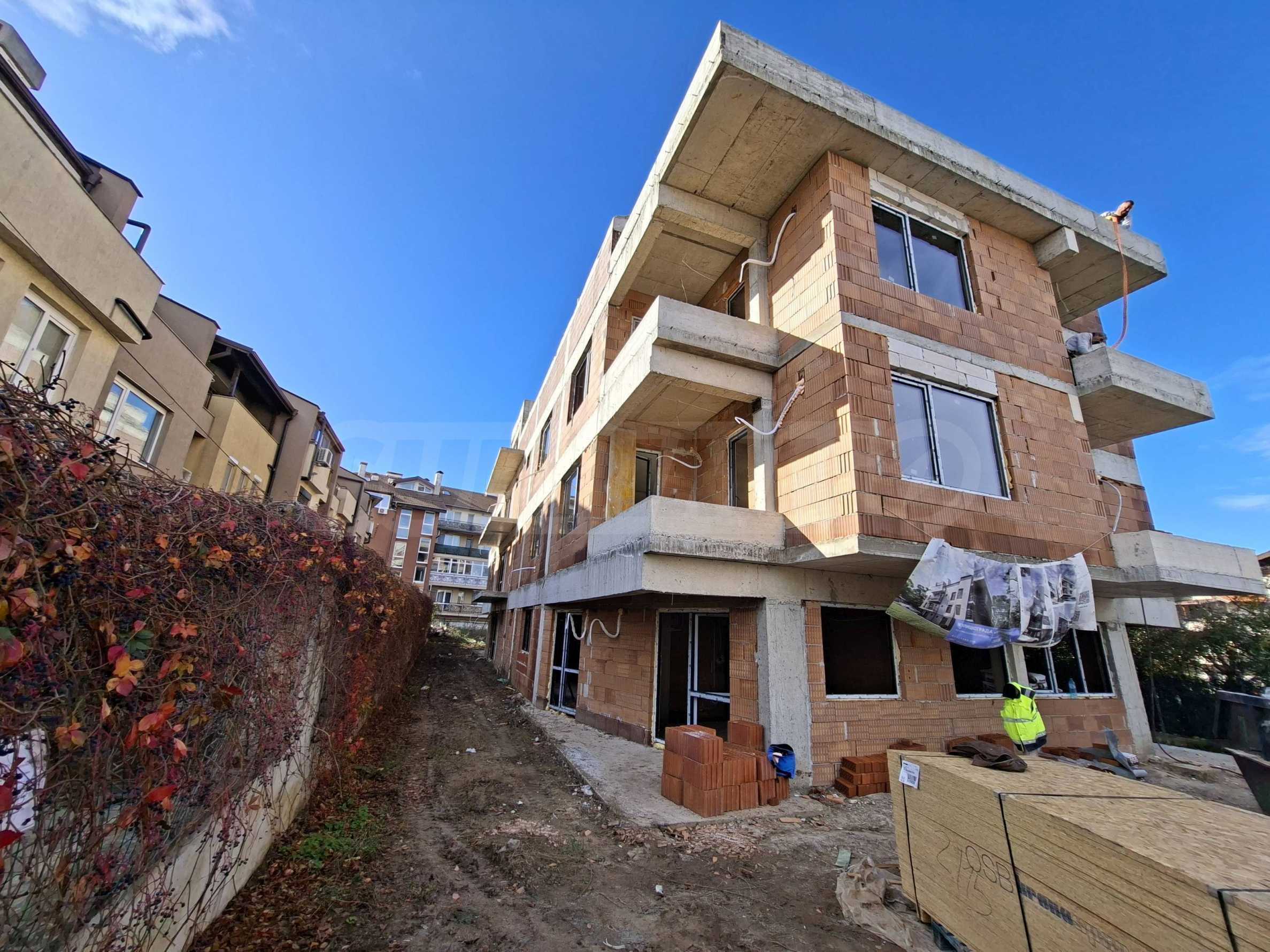 Квартира площадью 48,97 кв. м расположена на 3-м этаже, окна выходят на юг. Она сдаётся в следующей степени готовности в соответствии с болгарскими строительными нормами: