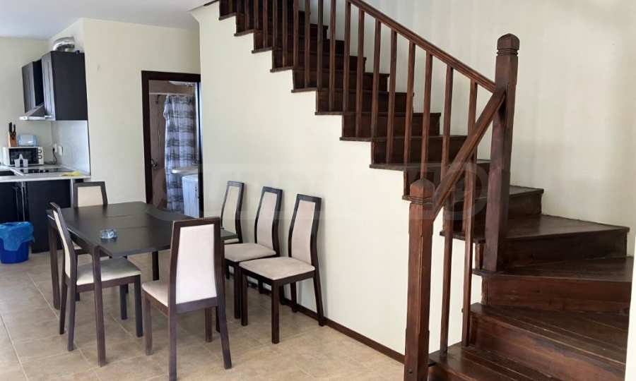 • этаж 1: прихожая, просторная гостиная со столовой и кухней, ванная комната с туалетом, веранда с видом на бассейн и сад комплекса;
