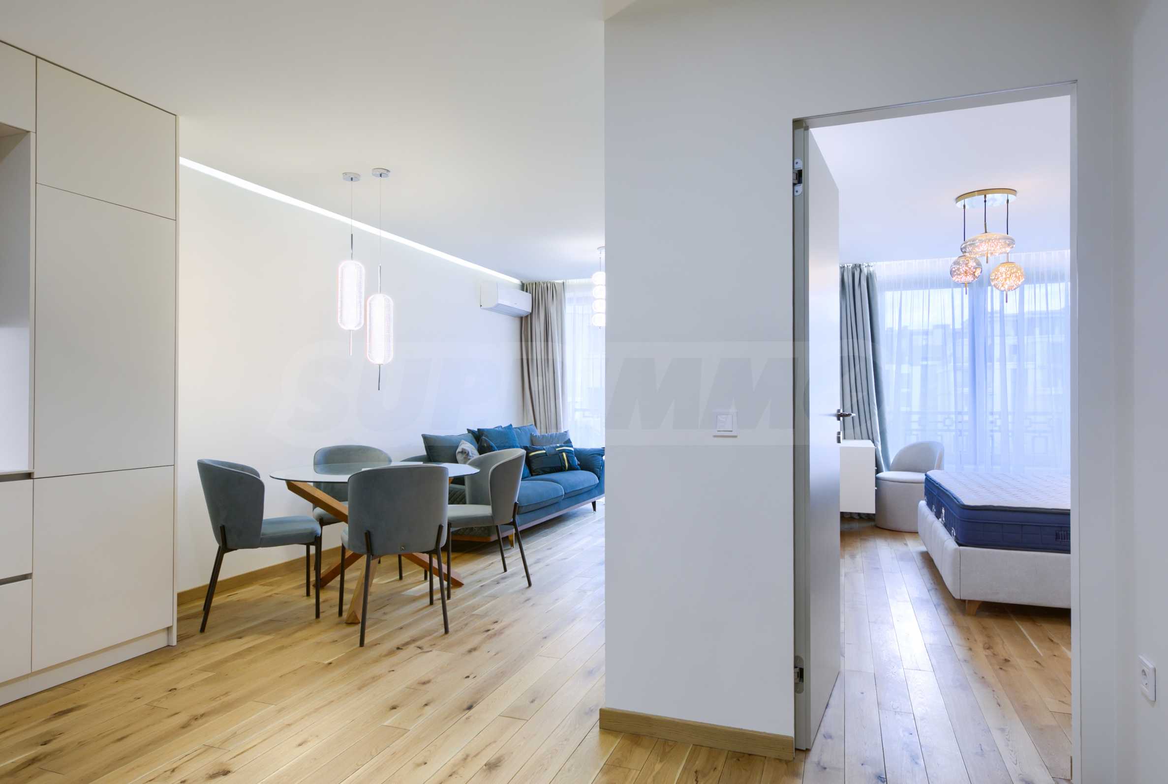 Квартира полностью меблирована и оборудована высококачественными материалами и деталями, подобранными с учетом комфорта и эстетики: