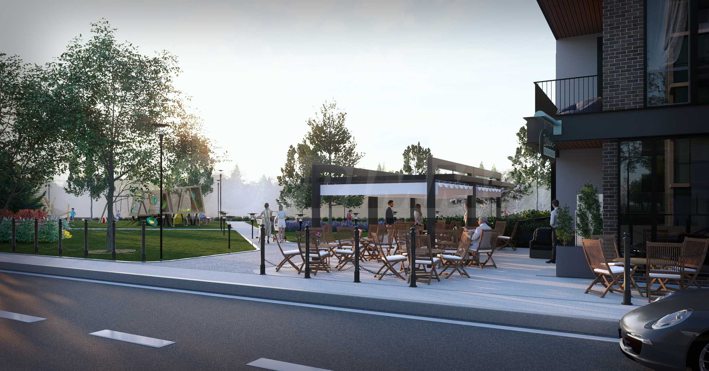 Общие зоны зданий и входные зоны будут отделаны напольными покрытиями и облицовкой из натурального мрамора или гранита. Финишная отделка всех террас будет выполнена гранитной плиткой. Жилой комплекс станет своего рода оазисом в динамичной городской среде Пловдива.