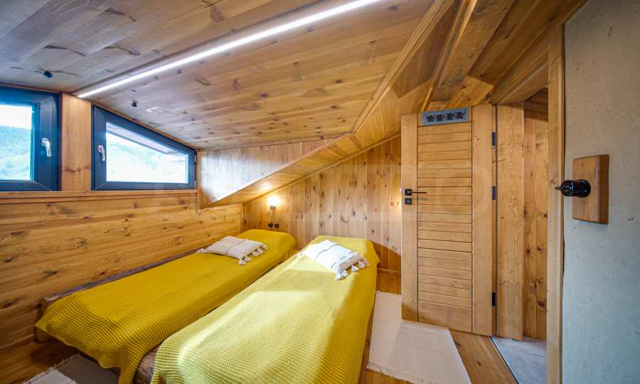 Просторная спальня, рассчитанная на 2 человек, своего рода «обсерватория» Родопских гор.
