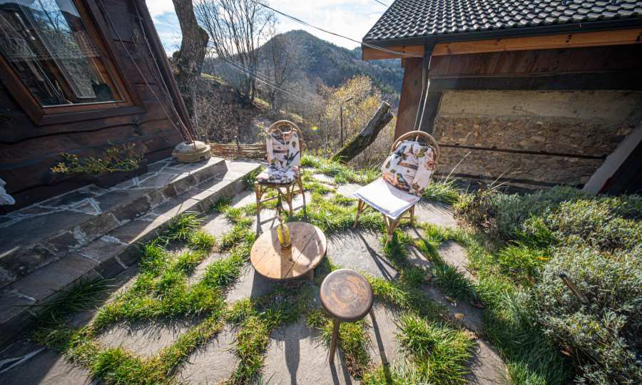 • Отдельный сарай прямо перед входной дверью – большая веранда и меблированный уголок с видом на горы.