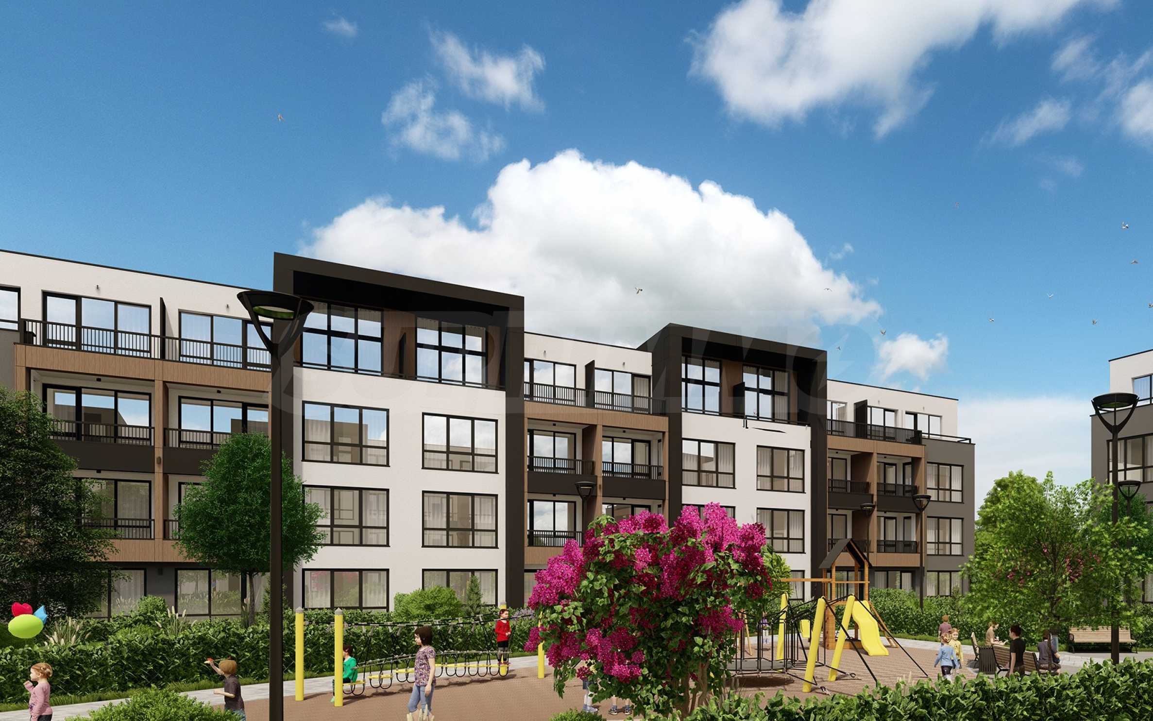 Квартиры сдаются в состоянии готовности, соответствующем болгарским строительным стандартам, с оштукатуриванием и стяжкой: