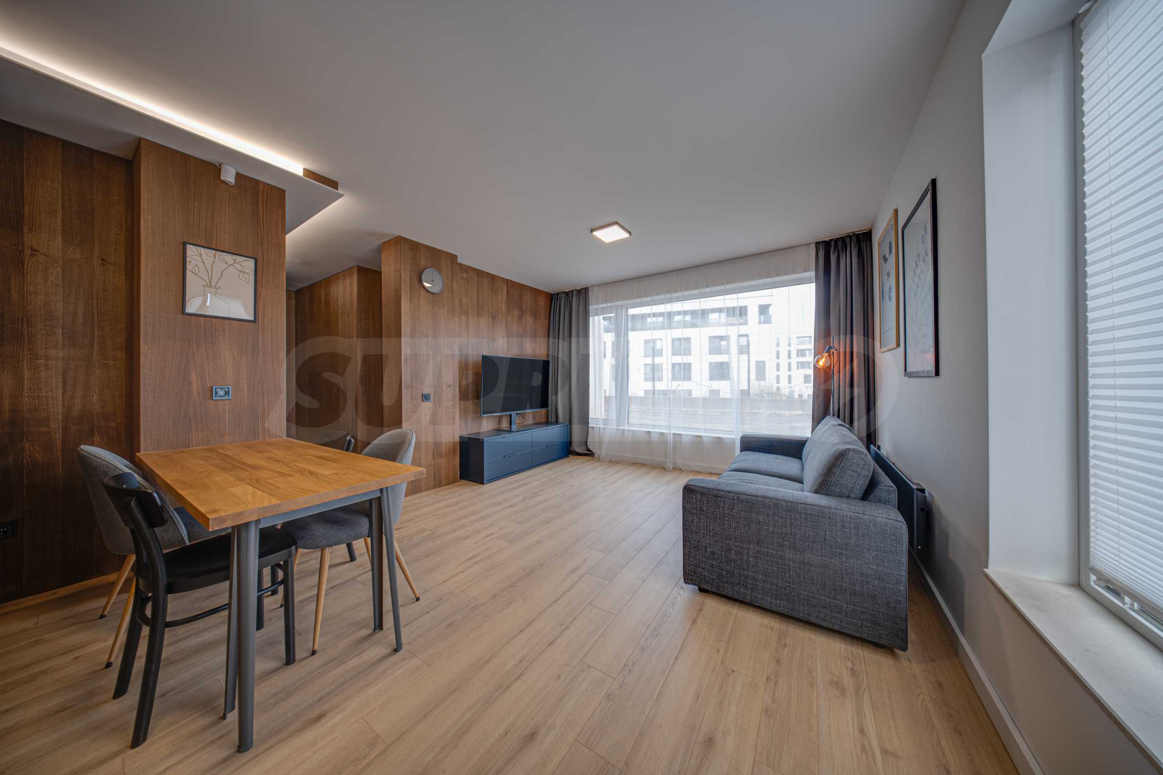 Однокомнатная квартира с современной меблировкую, в нескольких метрах от улицы Георгия Русева и бара-ресторана «Высокий парк». Квартира расположена в районе «Малинова Долина» в новостройке, рядом с будущей станцией метро.