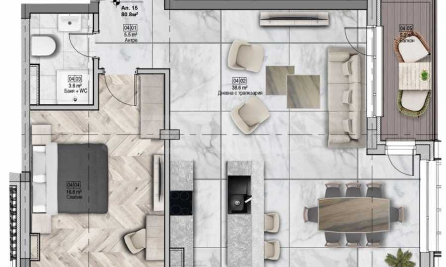 • Просторная и светлая зона, подчеркивающая современный стиль квартиры.