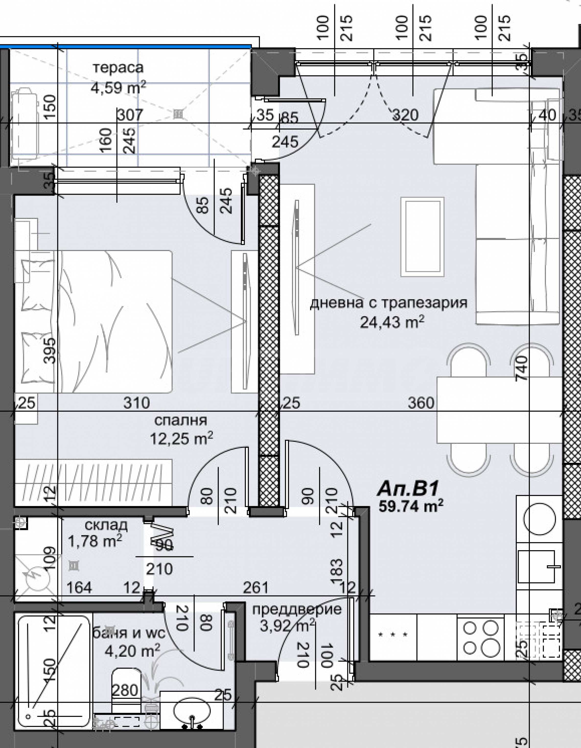 Представляем двухкомнатную квартиру в новом жилом комплексе в районе Тракия. Отличное расположение, вдали от шума, недалеко от парка Лаута и транспортных развязок, школы, детских площадок, ресторанов, магазинов, отеля, бассейнов, в 3,9 км от центра и в 13,5 км от аэропорта Пловдива.
