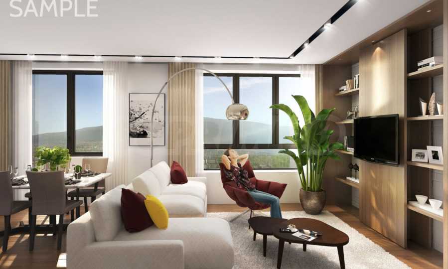 Однокомнатная квартира в новом жилом доме с прекрасно ухоженными общими зонами, расположенная на 11 этаже, предлагает беспрепятственный панорамный вид на город и прекрасный вид на гору Витоша. Благодаря южной ориентации, квартира получает много естественного света и пространства в течение всего дня.