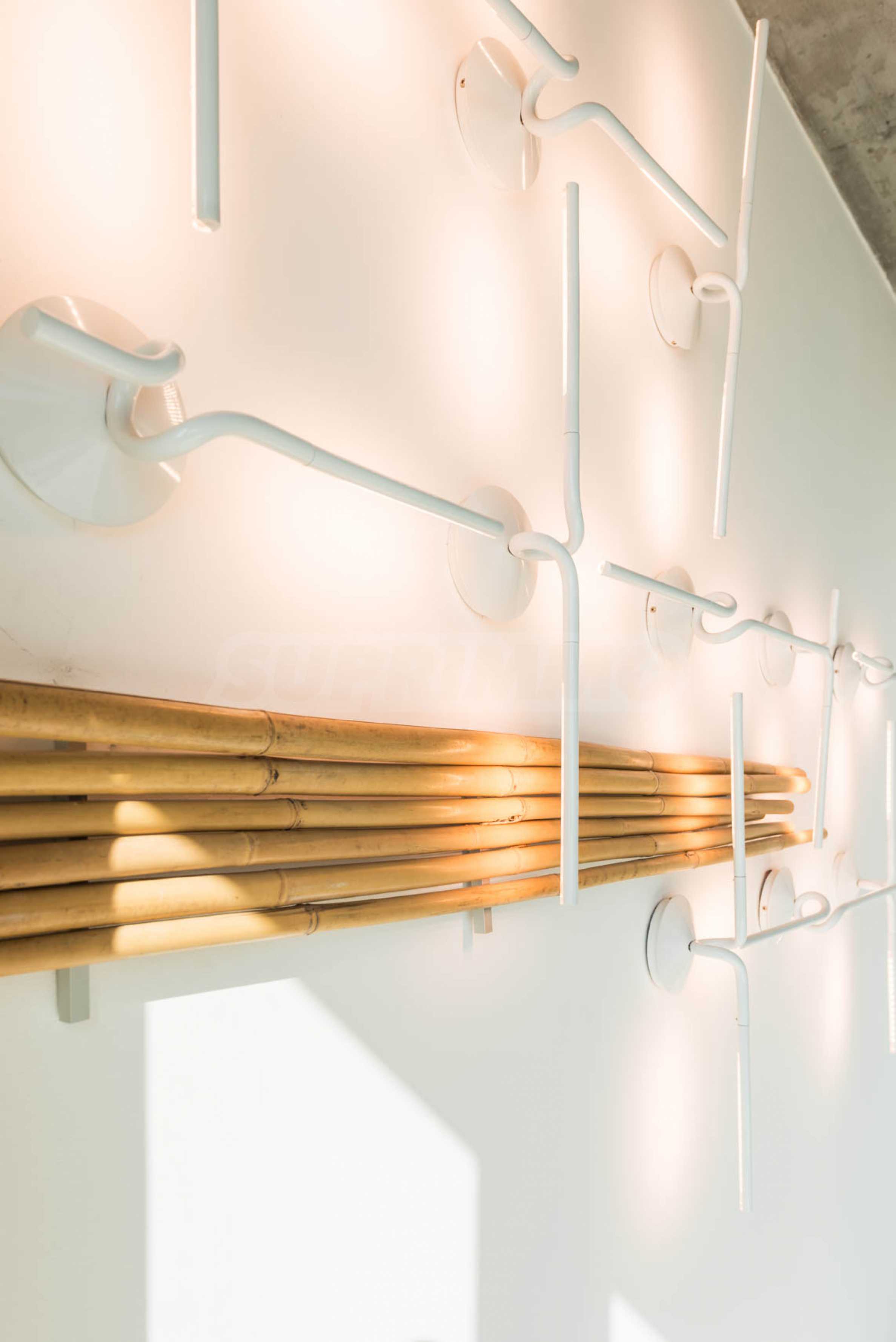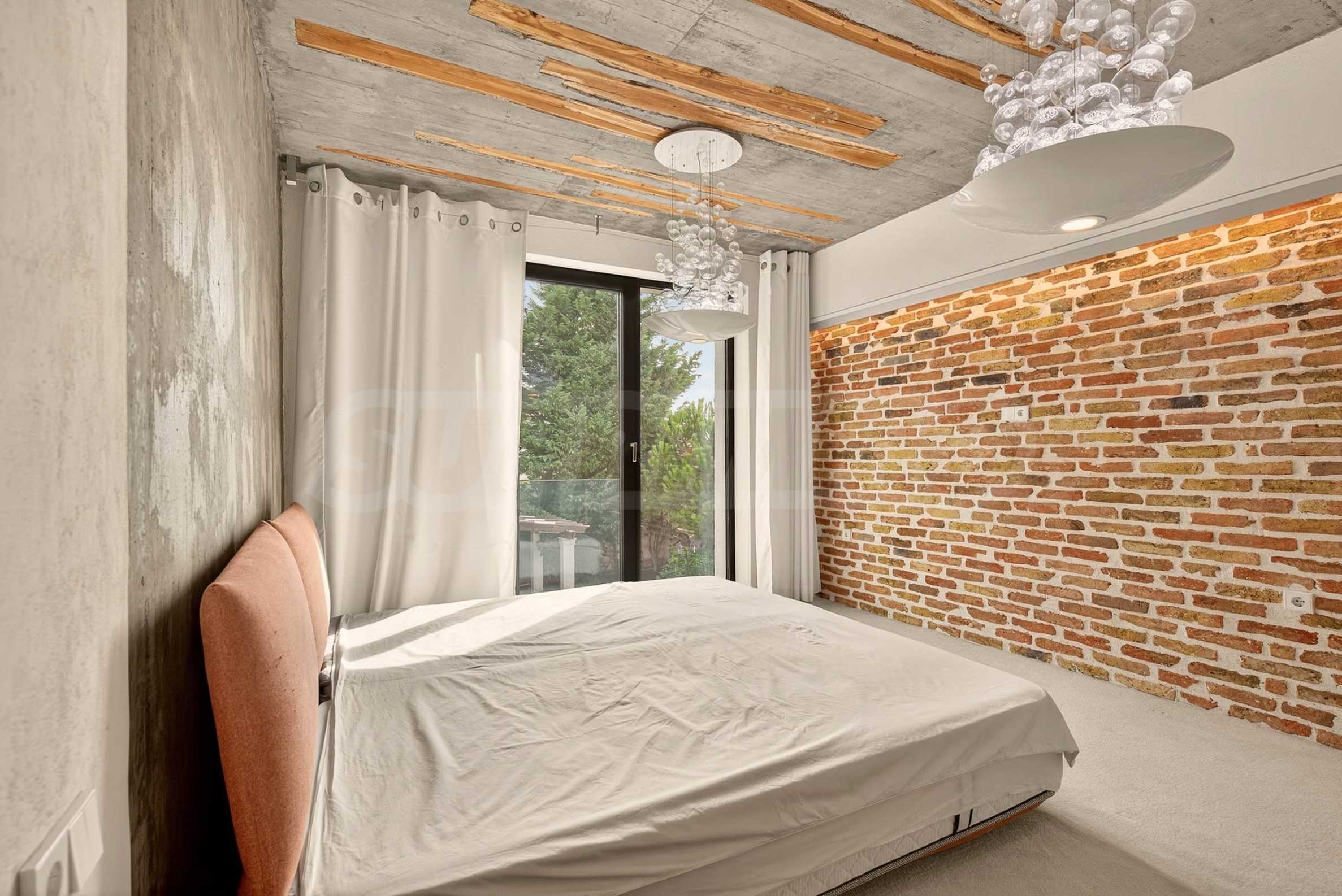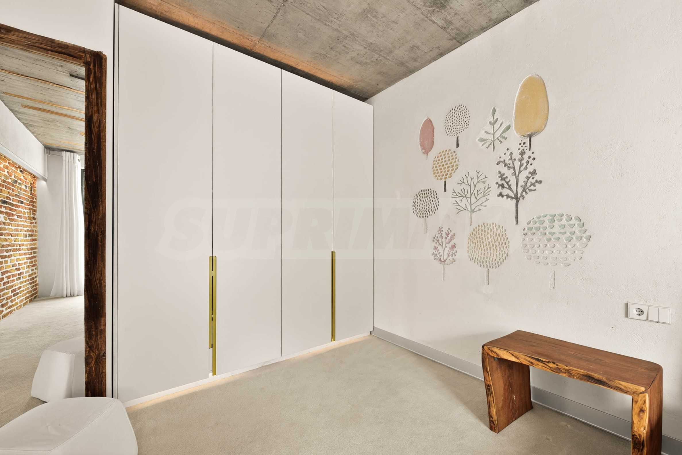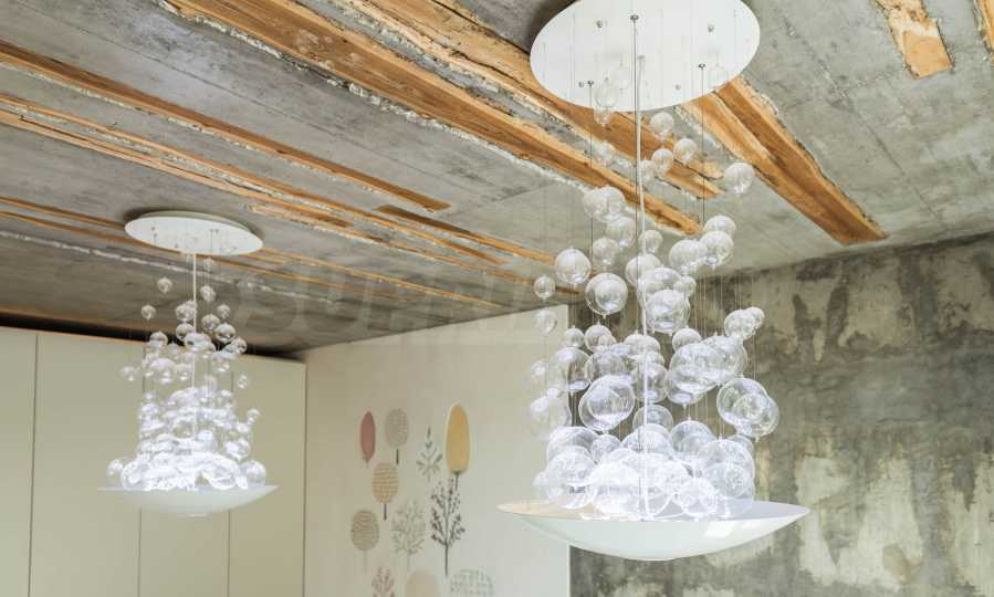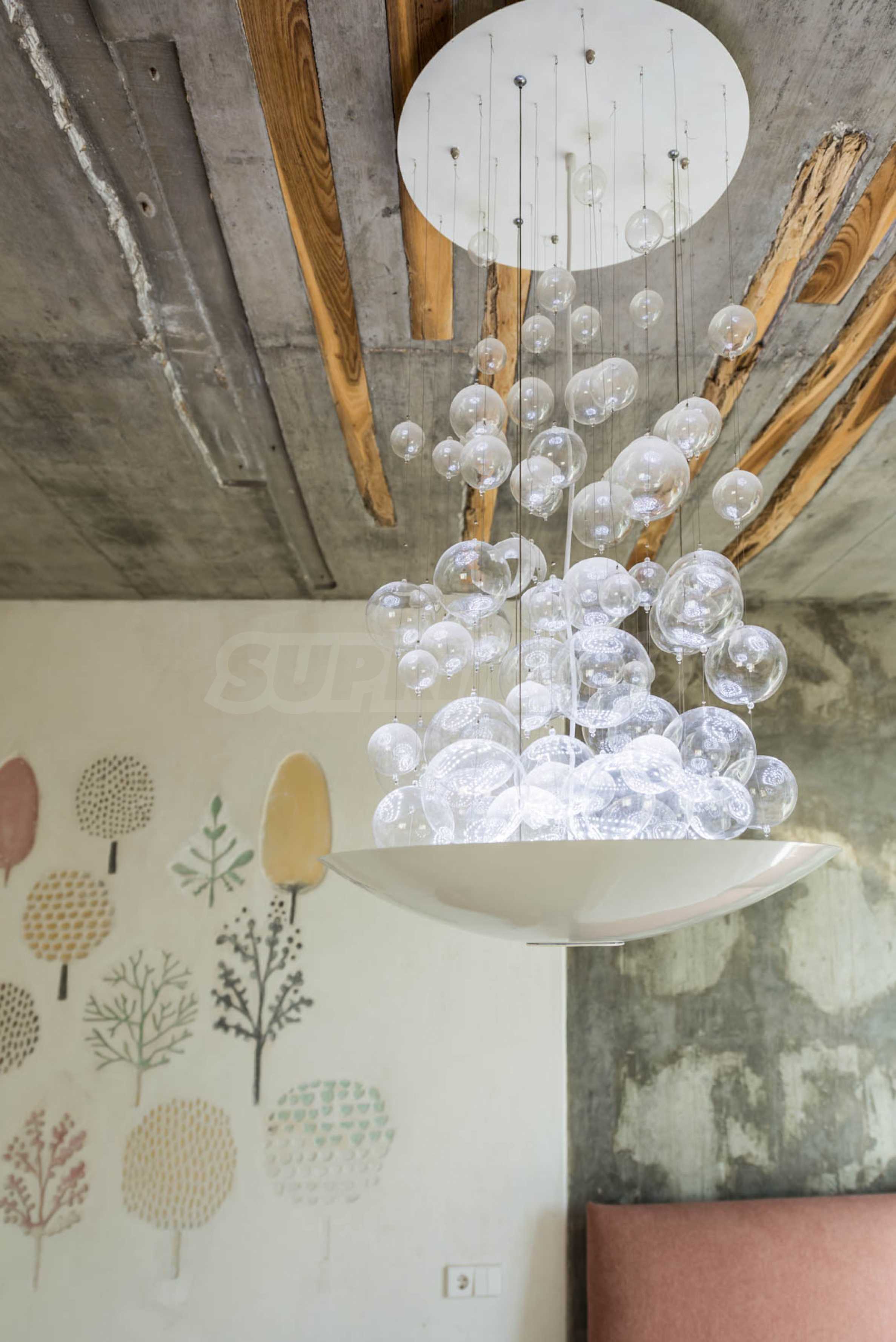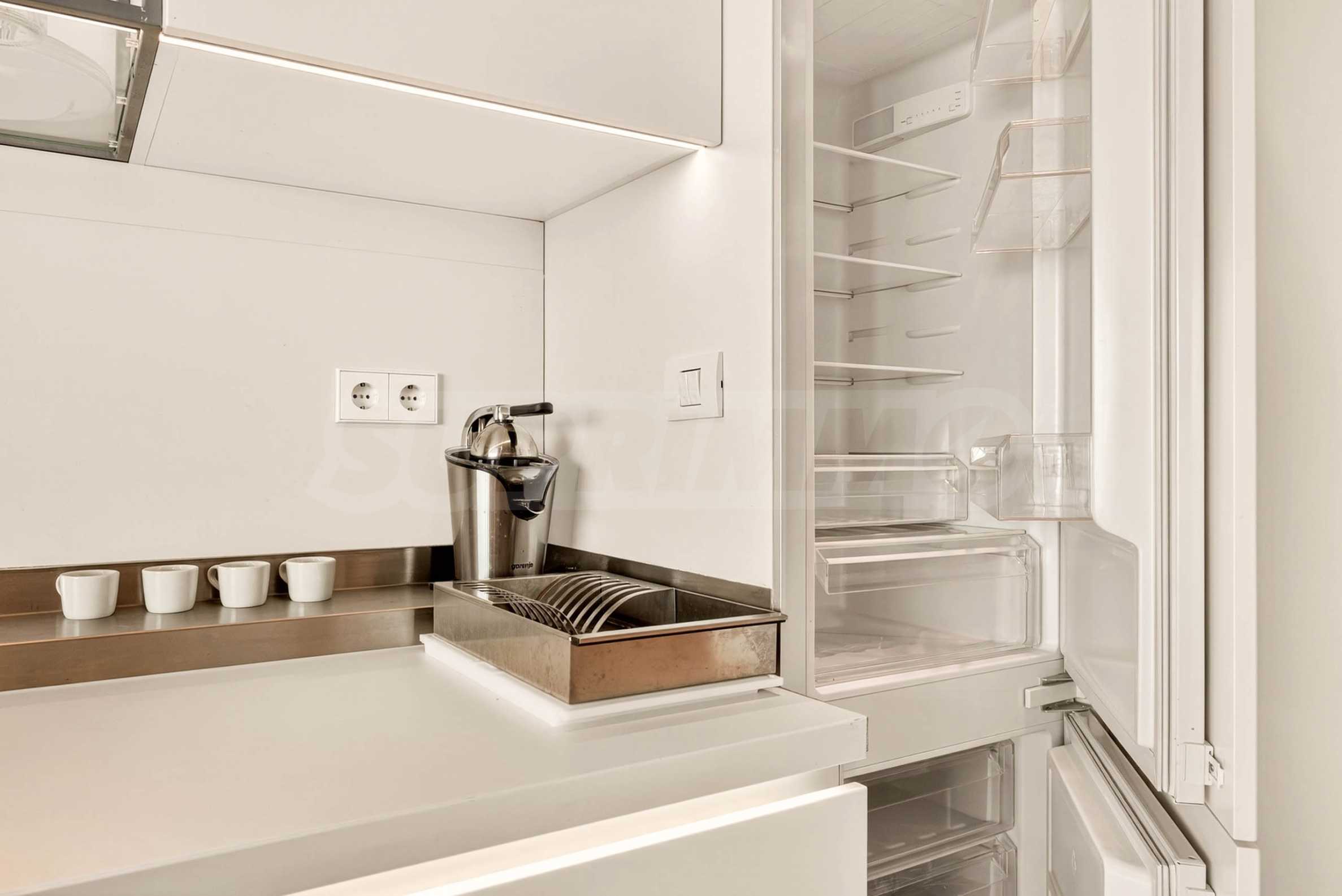 Дизайн уникален – естественный и современный, смелый и яркий, несущий в себе идею автономии, релаксации и морской атмосферы. В бетонные плиты потолка квартиры встроены декоративные элементы из натуральной акации. Кирпичные стены и бетон используются для натуральной отделки, дополнительно обработаны, пропитаны и загрунтованы. Мебель, кухня, матрасы и диваны, привлекательная плитка, светильники – все от известных итальянских брендов. В столовой внимание привлекает экстравагантный стол, изготовленный на заказ из ценной и редкой древесины Амазонии. Вся сантехника в ванных комнатах – первоклассного немецкого качества.