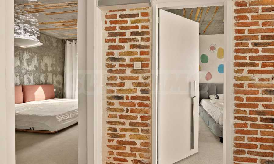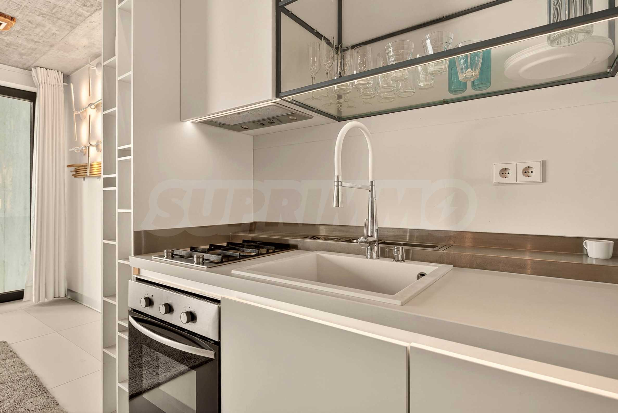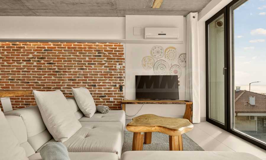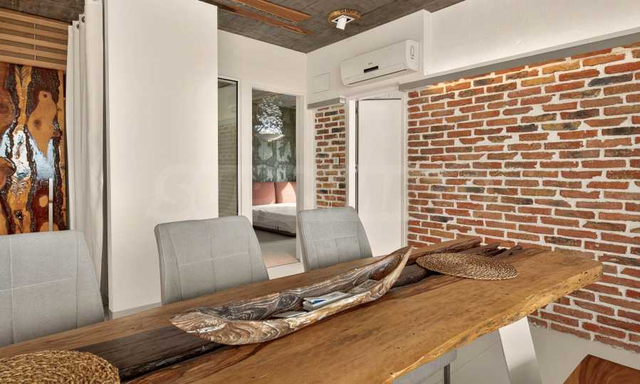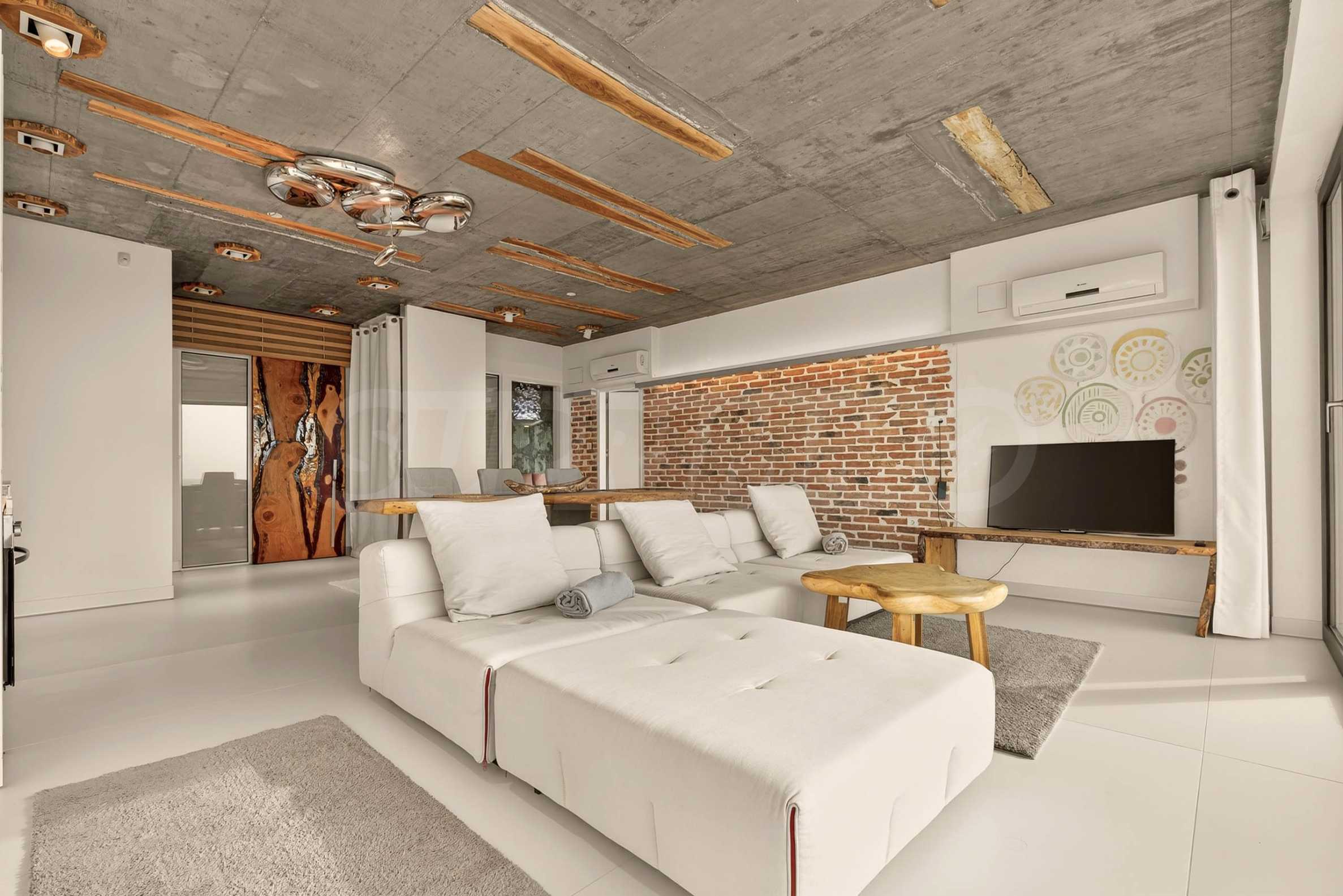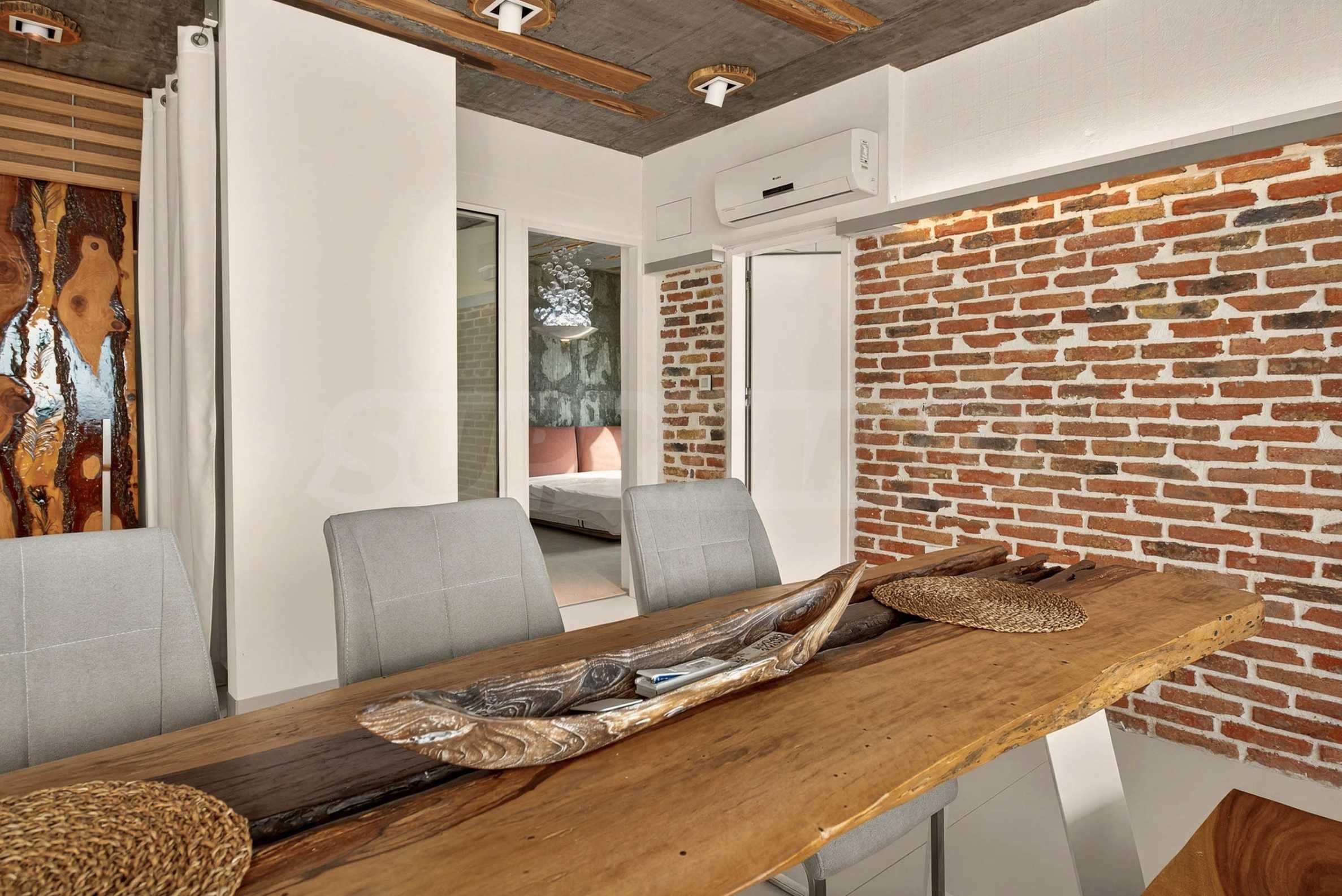 Уникальная двухкомнатная квартира расположена на 2-м этаже культового «умного» здания в прибрежной зоне Свети Никола в Варне.