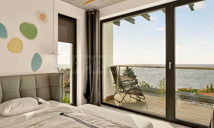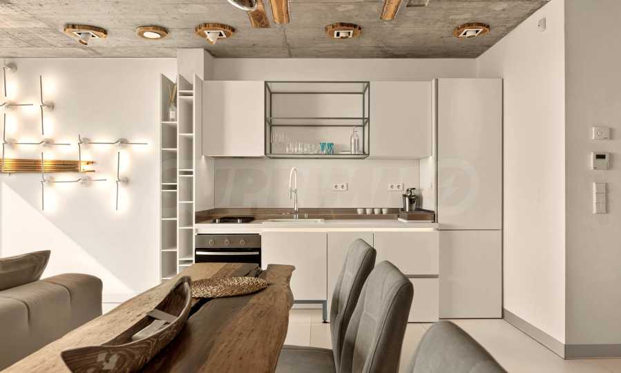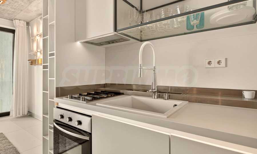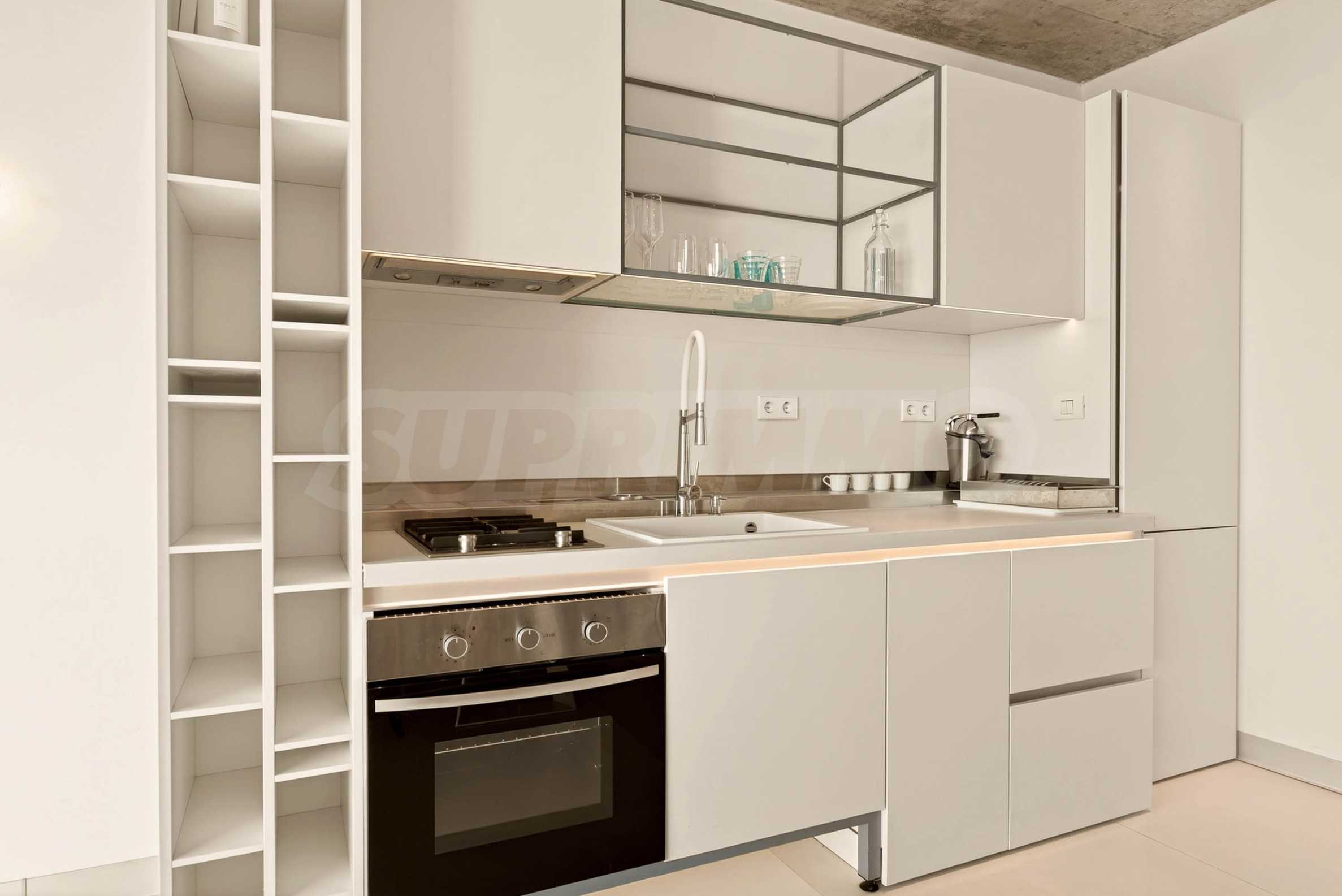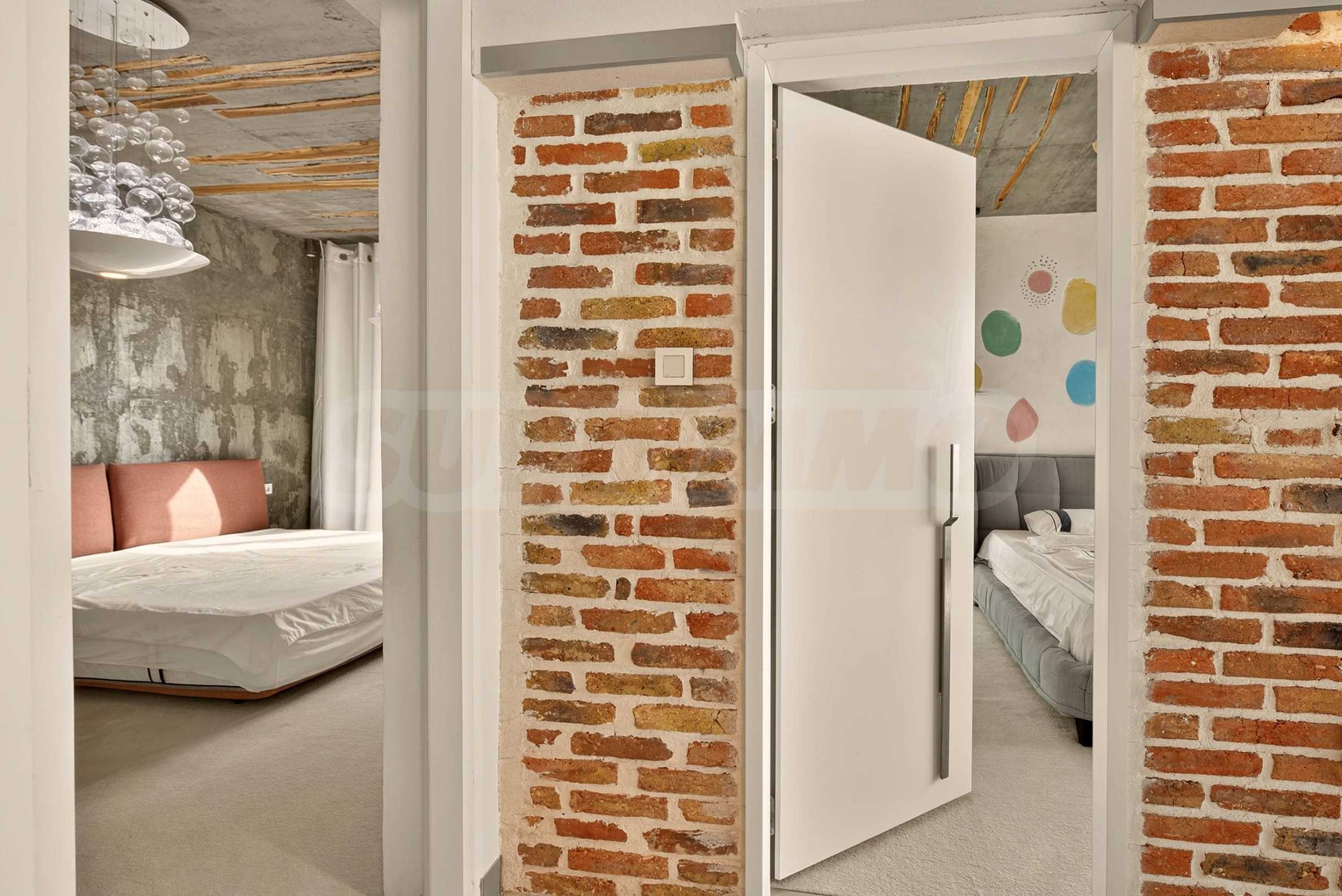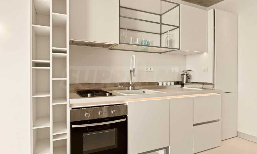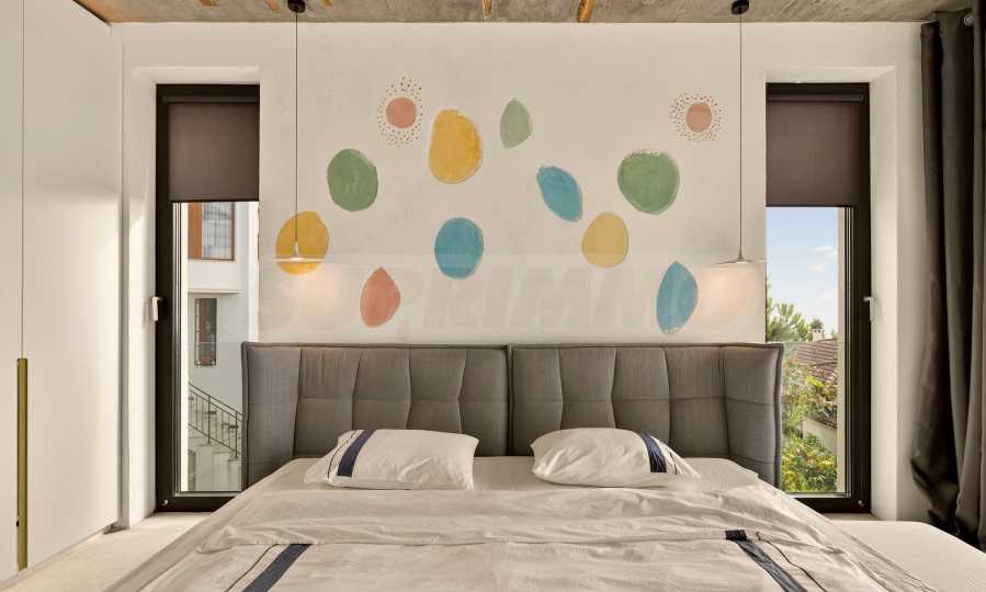 Уникальная двухкомнатная квартира расположена на 2-м этаже культового «умного» здания в прибрежной зоне Свети Никола в Варне.
