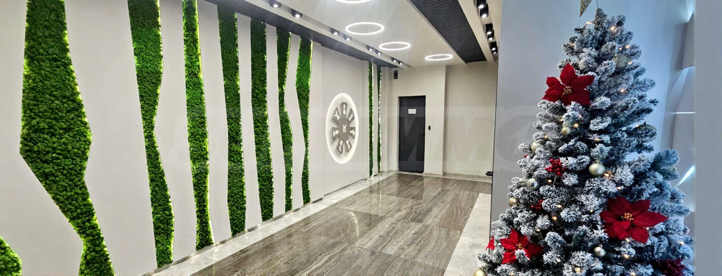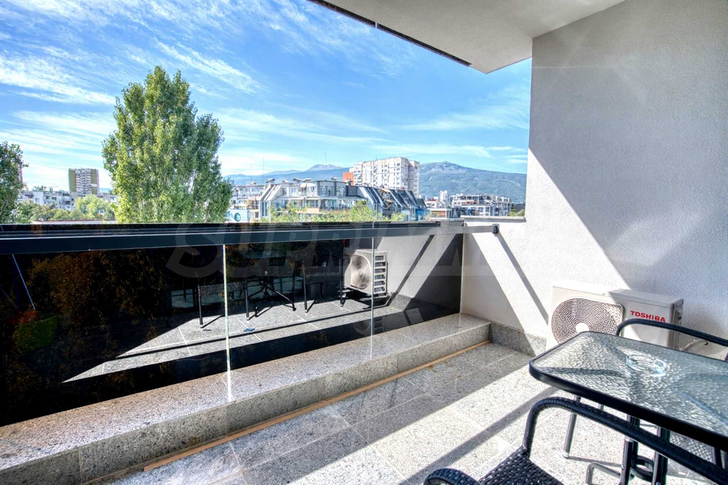 Высокий этаж обеспечивает обилие естественного света, полную тишину и прекрасный вид на зеленые зоны и гору Витоша. С просторной террасы, обставленной садовой меблировкую, можно даже слышать журчание небольшого ручейка неподалеку, что создает неповторимое ощущение покоя и уединения.