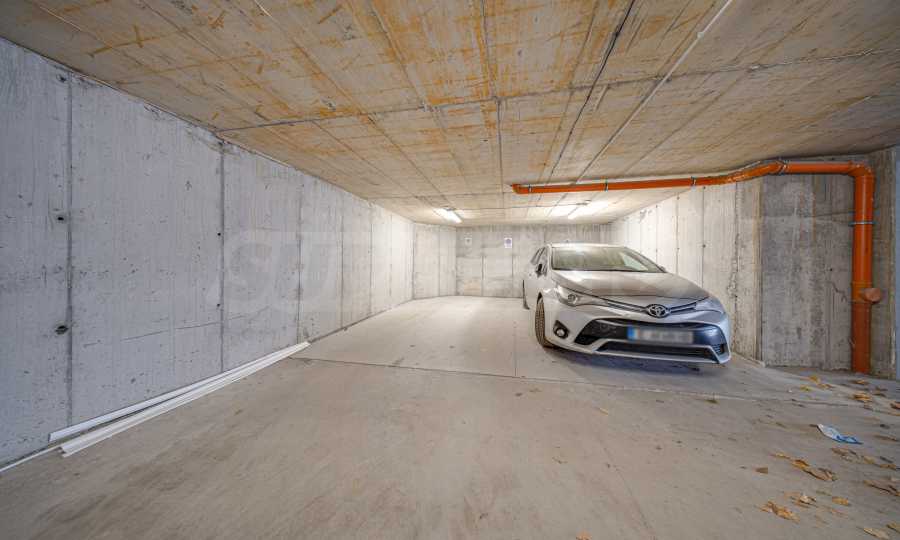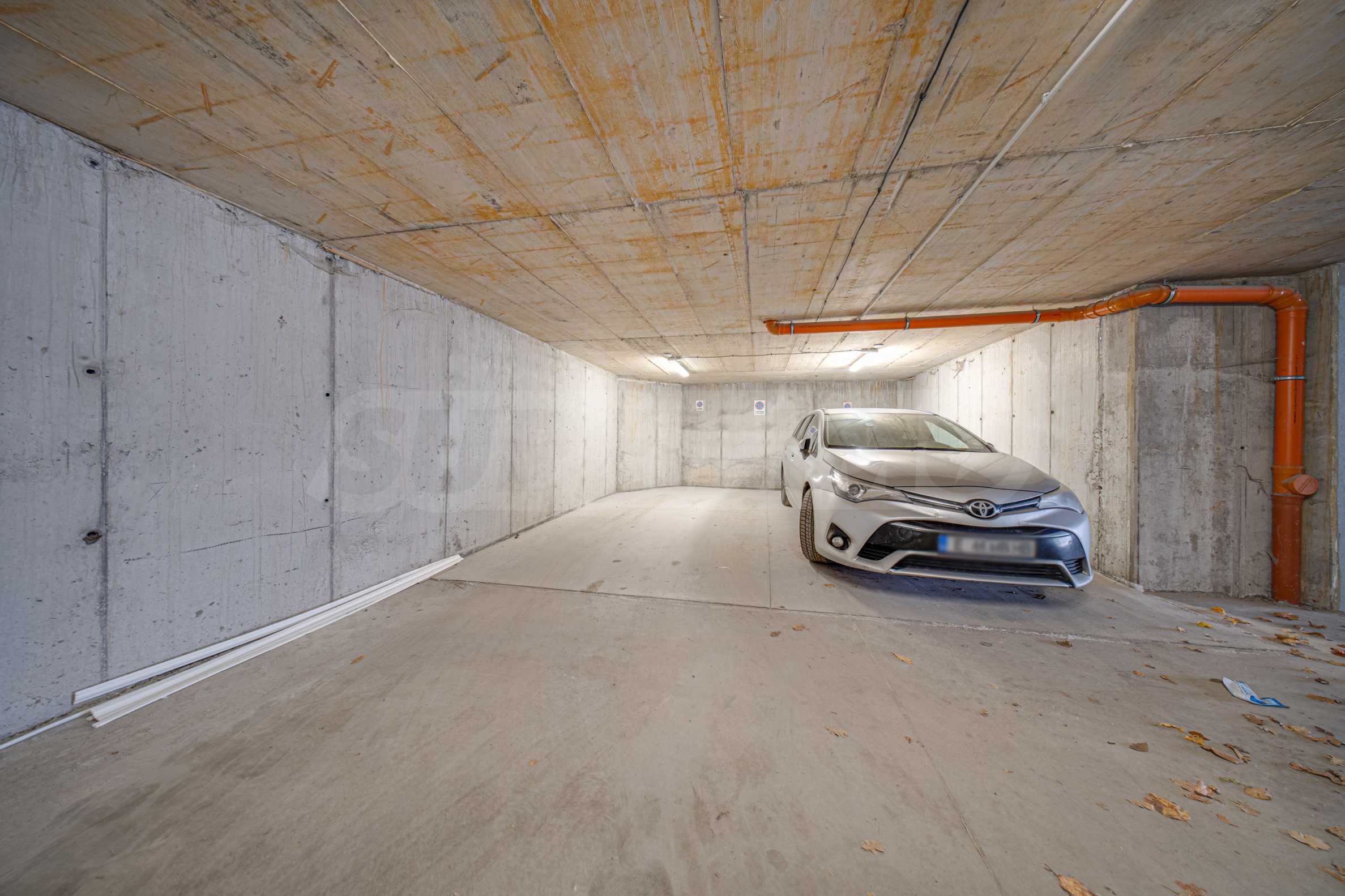 Подземная парковка по цене 100 евро в месяц.