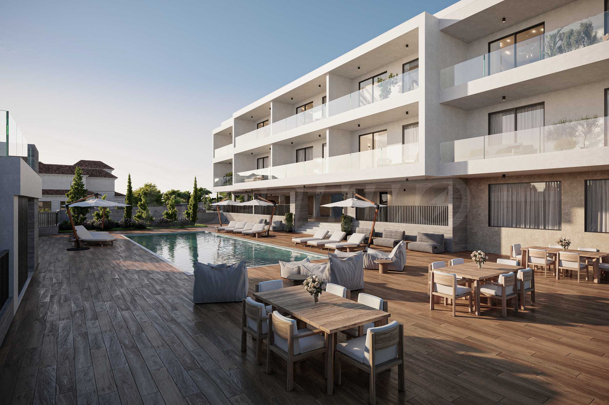 Комплекс предлагает элегантные апартаменты с одной и двумя спальнями, спроектированные с вниманием к деталям и комфорту, а также ориентированные на максимальное использование вида на море.