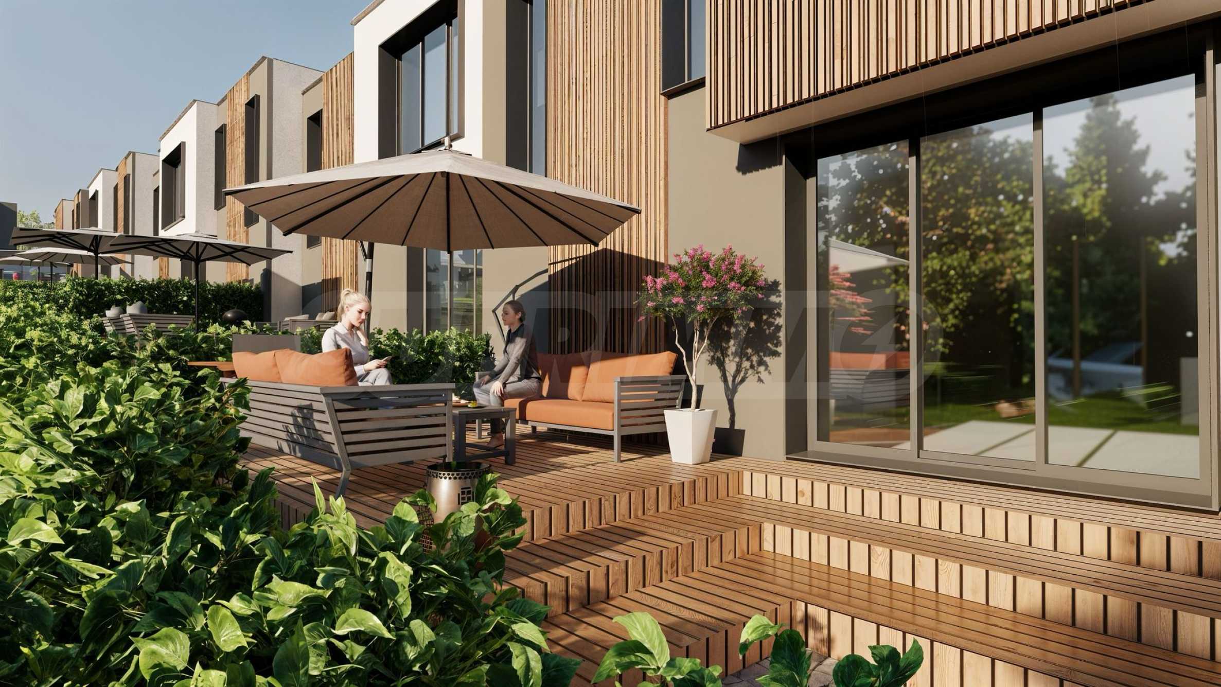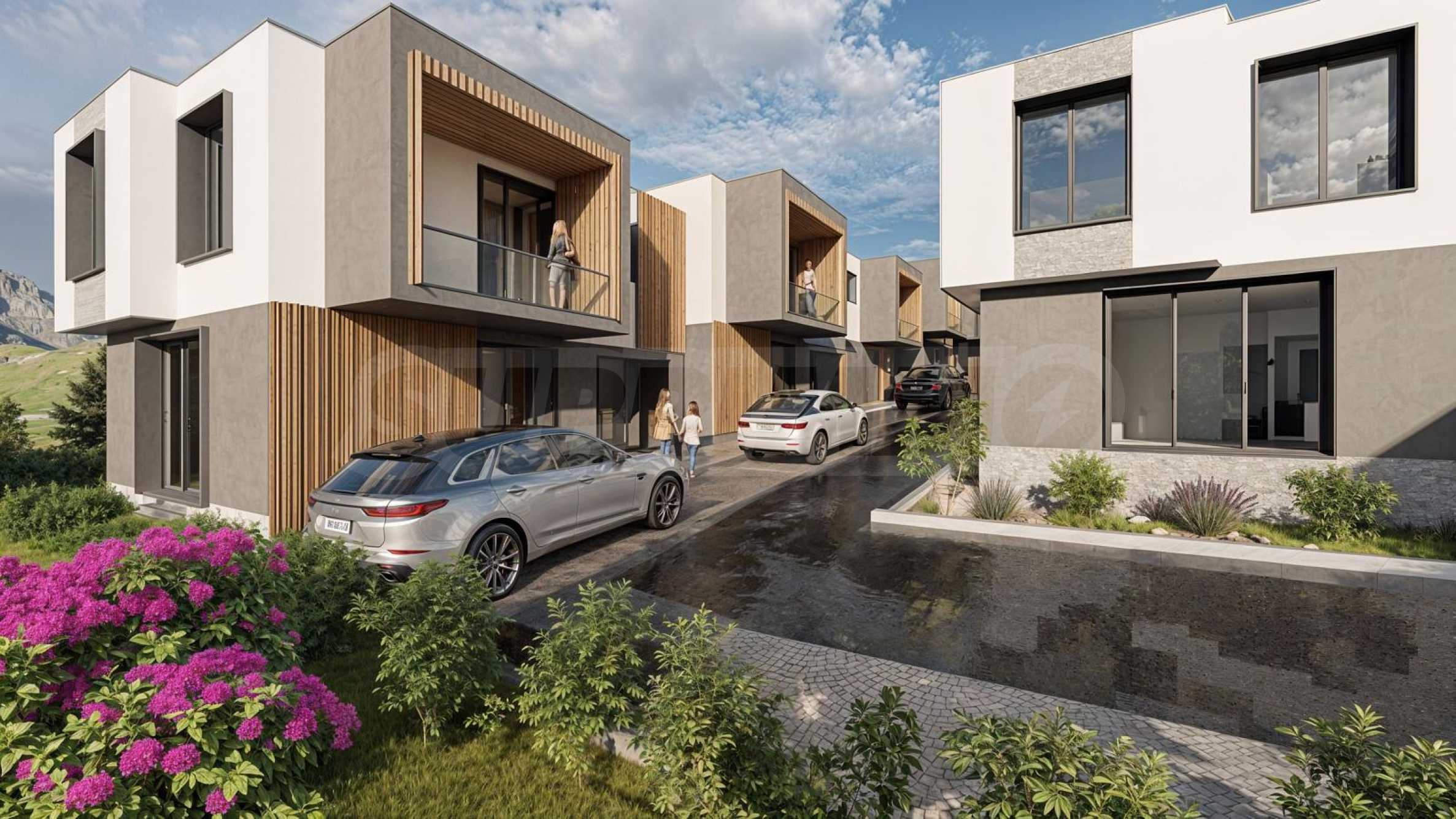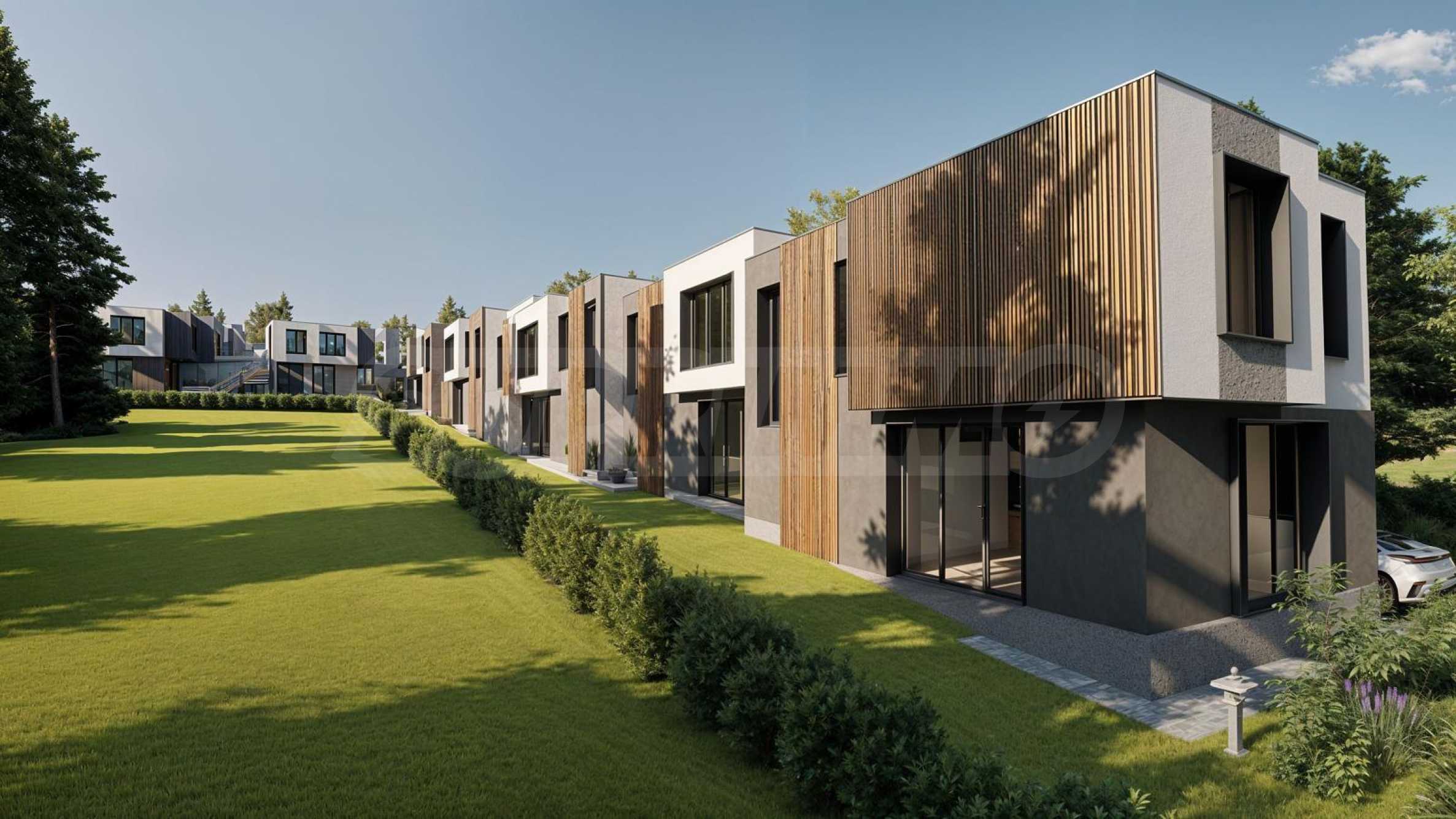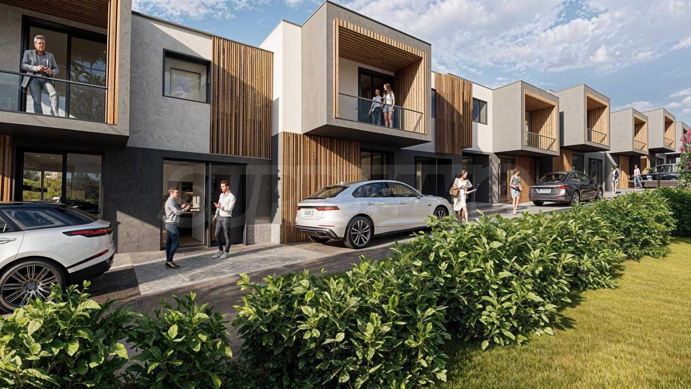 Представляем вашему вниманию двухэтажные дома в современном стиле, расположенные в закрытом жилом комплексе среди зелени экорегиона недалеко от Солнечного Берега, в вилловой зоне села Кошарица.