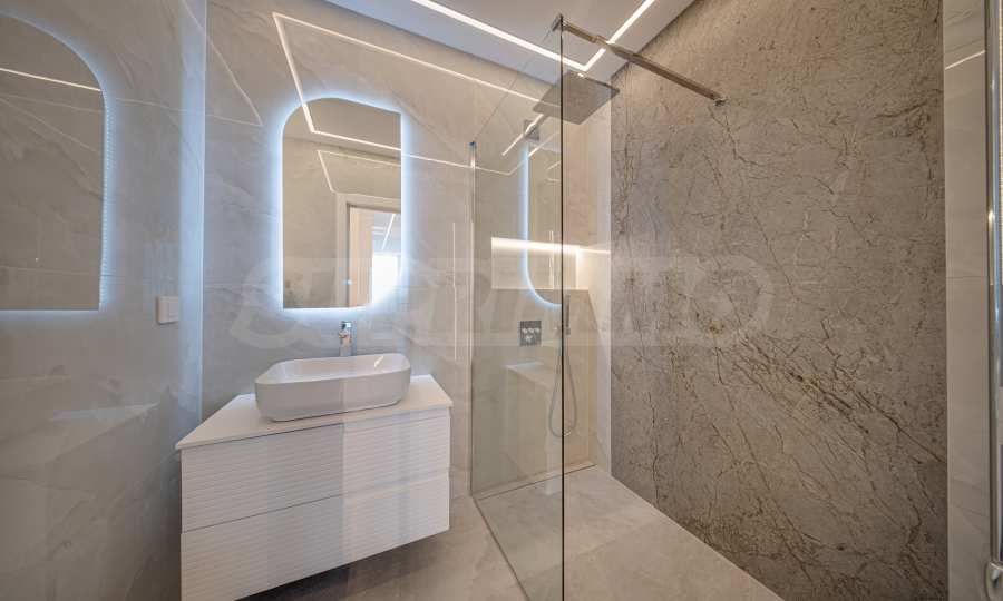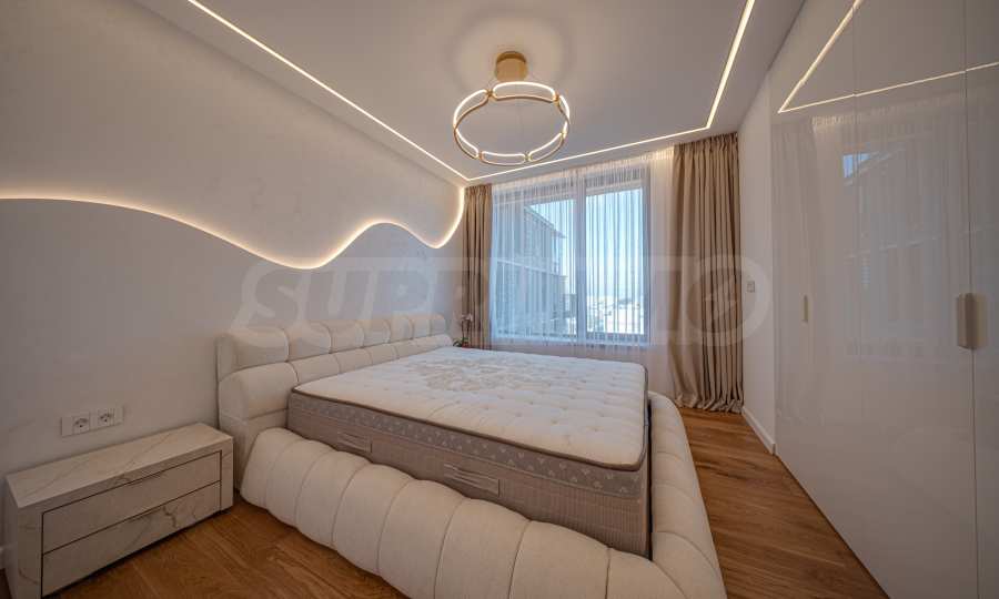 Квартира площадью 96 кв. м расположена на 10 этаже и предлагает панорамный вид на населенный пункт и гору Витоша. Квартира светлая, отличается современным дизайном и интерьером с чистыми линиями. Большие окна создают ощущение простора и обилия света, а качественные материалы и изысканная мебель – уют и элегантность. Планировка включает в себя удобный прихожий, ванную комнату с туалетом, комфортабельную спальню, просторную гостиную с кухней и обеденной зоной, террасу.