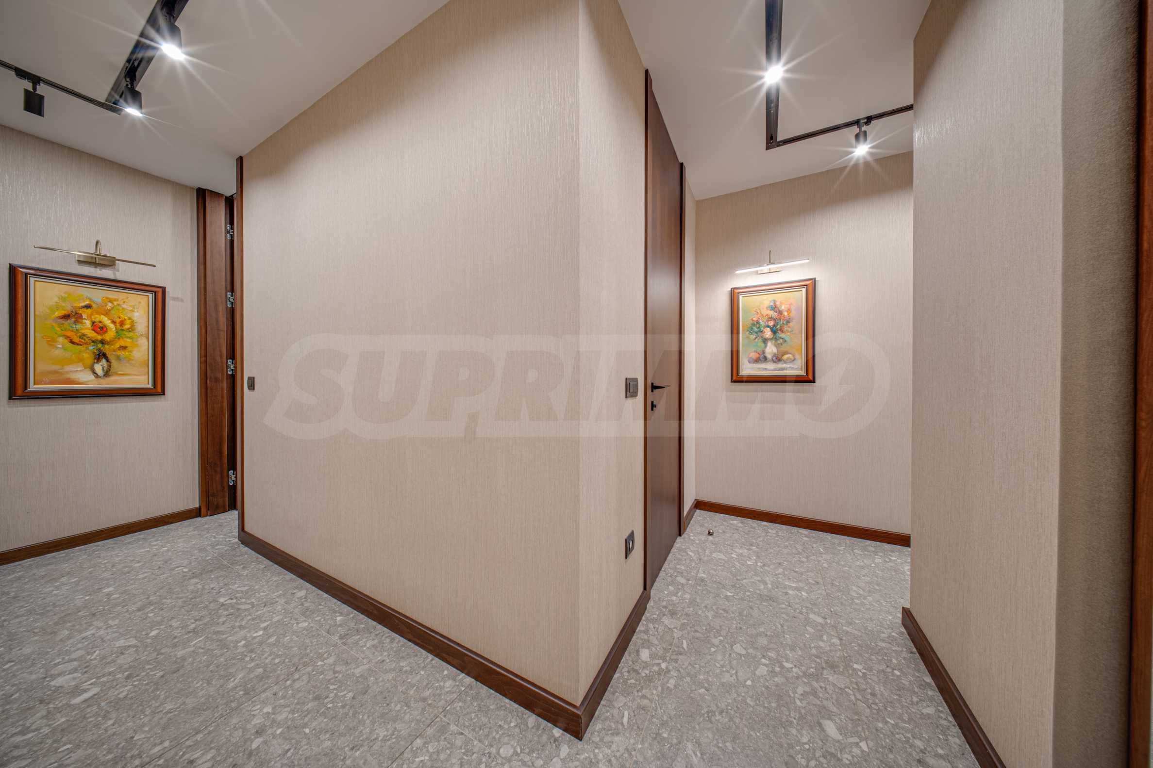 Квартира впечатляет своей просторностью, светом и чрезвычайно функциональным и стильным дизайном. Интерьер отличается высококачественной меблировкую, изготовленной на заказ, встроенной бытовой техникой от известных производителей, материалами премиум-класса и современными решениями, отвечающими самым высоким стандартам комфорта и эстетики.