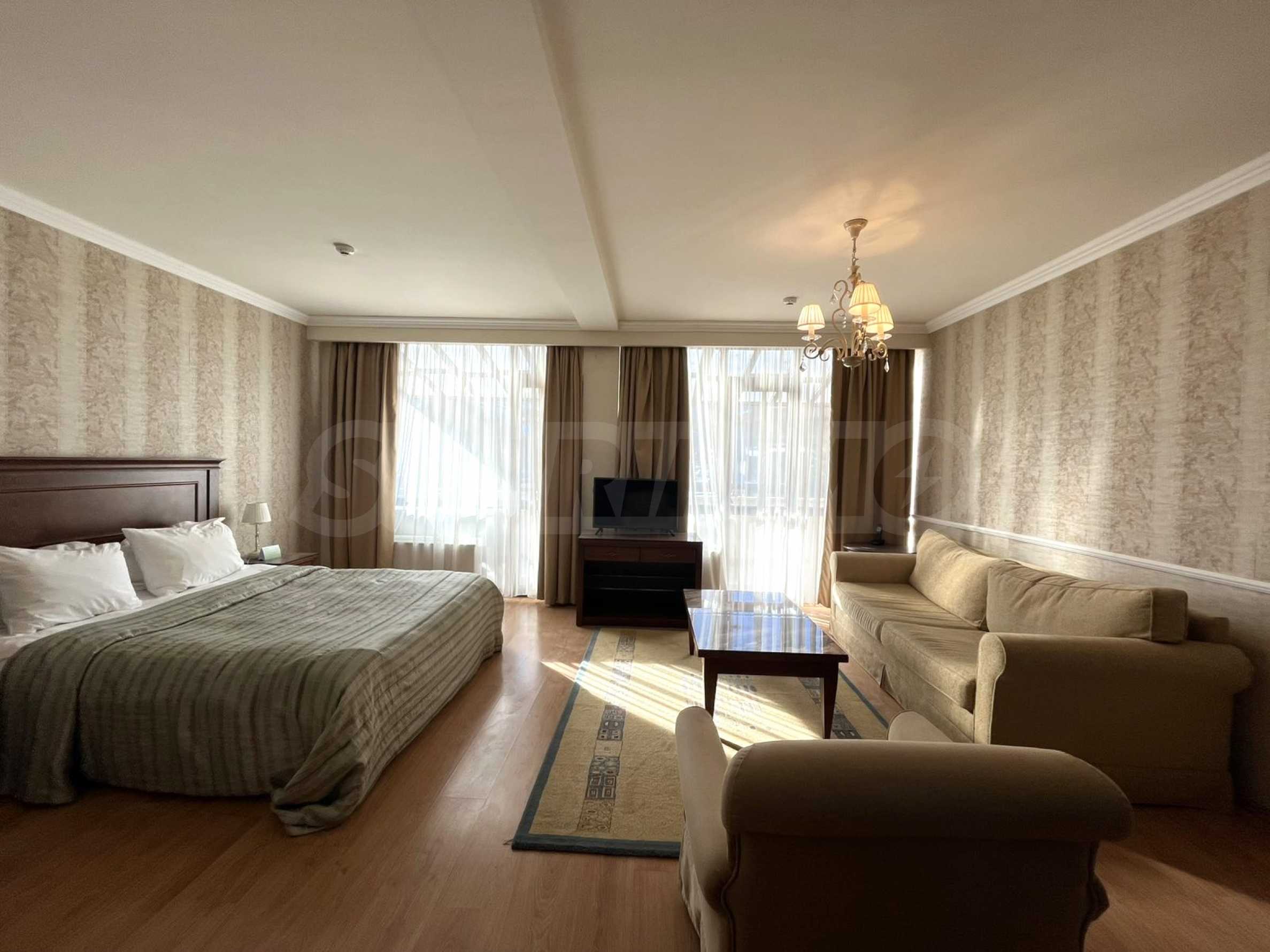 Продается роскошная и просторная однокомнатная квартира в 5-звездочном комплексе в Банско – элитном горнолыжном курорте класса люкс.