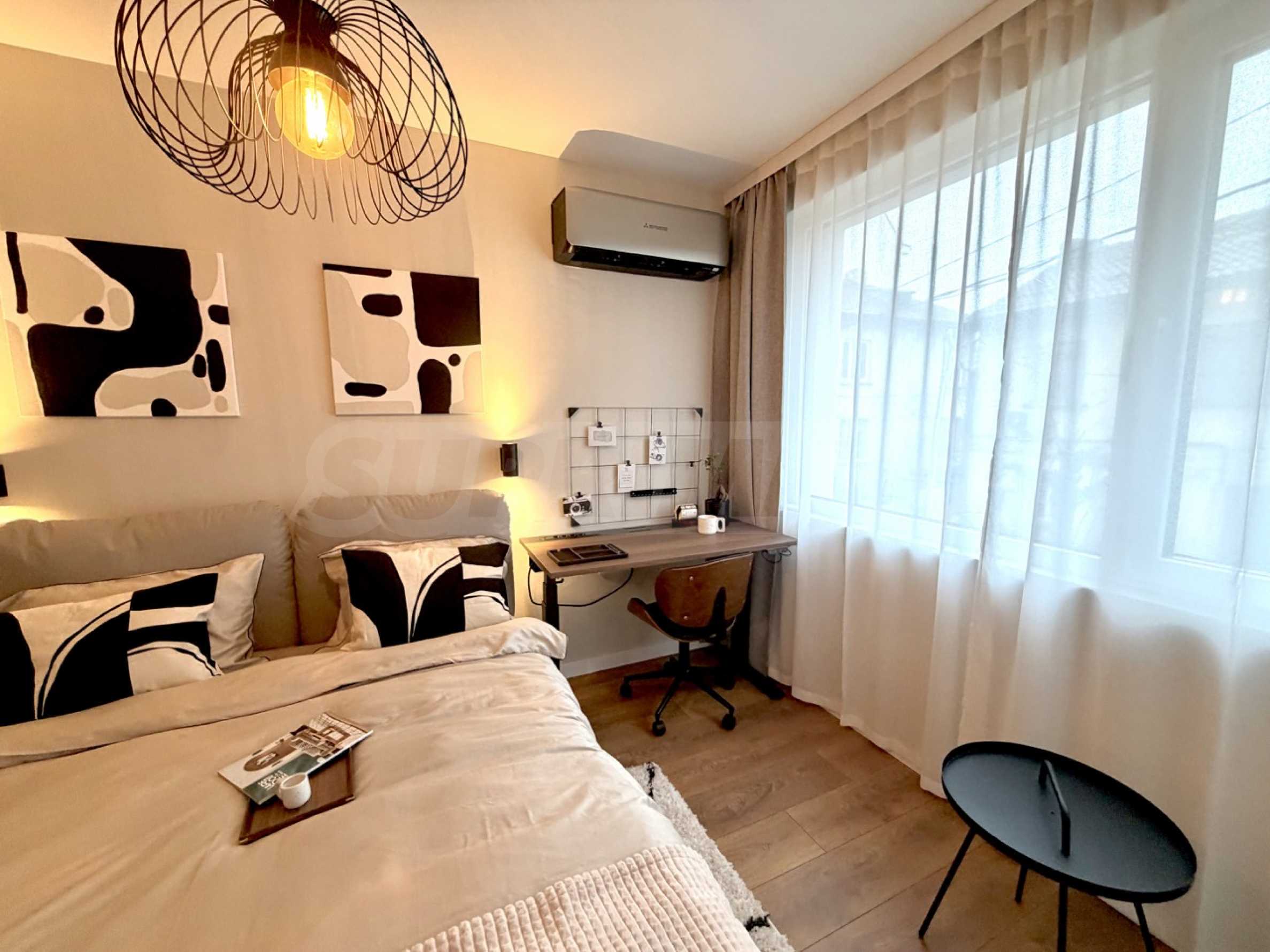 Этот объект недвижимости впечатляет тщательно подобранным интерьером, высококачественными материалами и гармоничным сочетанием функциональности и эстетики. Пространство оптимально организовано и включает в себя элегантную гостиную с мини-кухней, уютную спальню, а также современную ванную комнату. Мебель и оснащение подобраны с учетом высоких требований к комфорту и стилю.