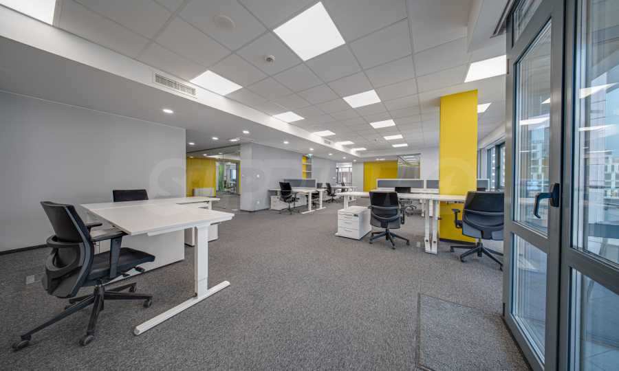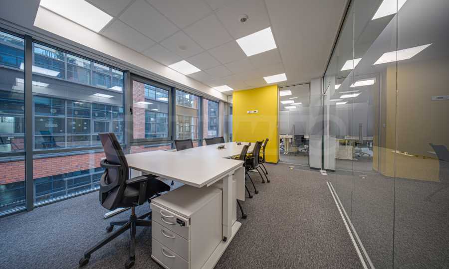 - На каждом этаже есть переговорная комната, кухня, несколько кабинетов и большие рабочие пространства открытого типа с возможностью изменения планировки;