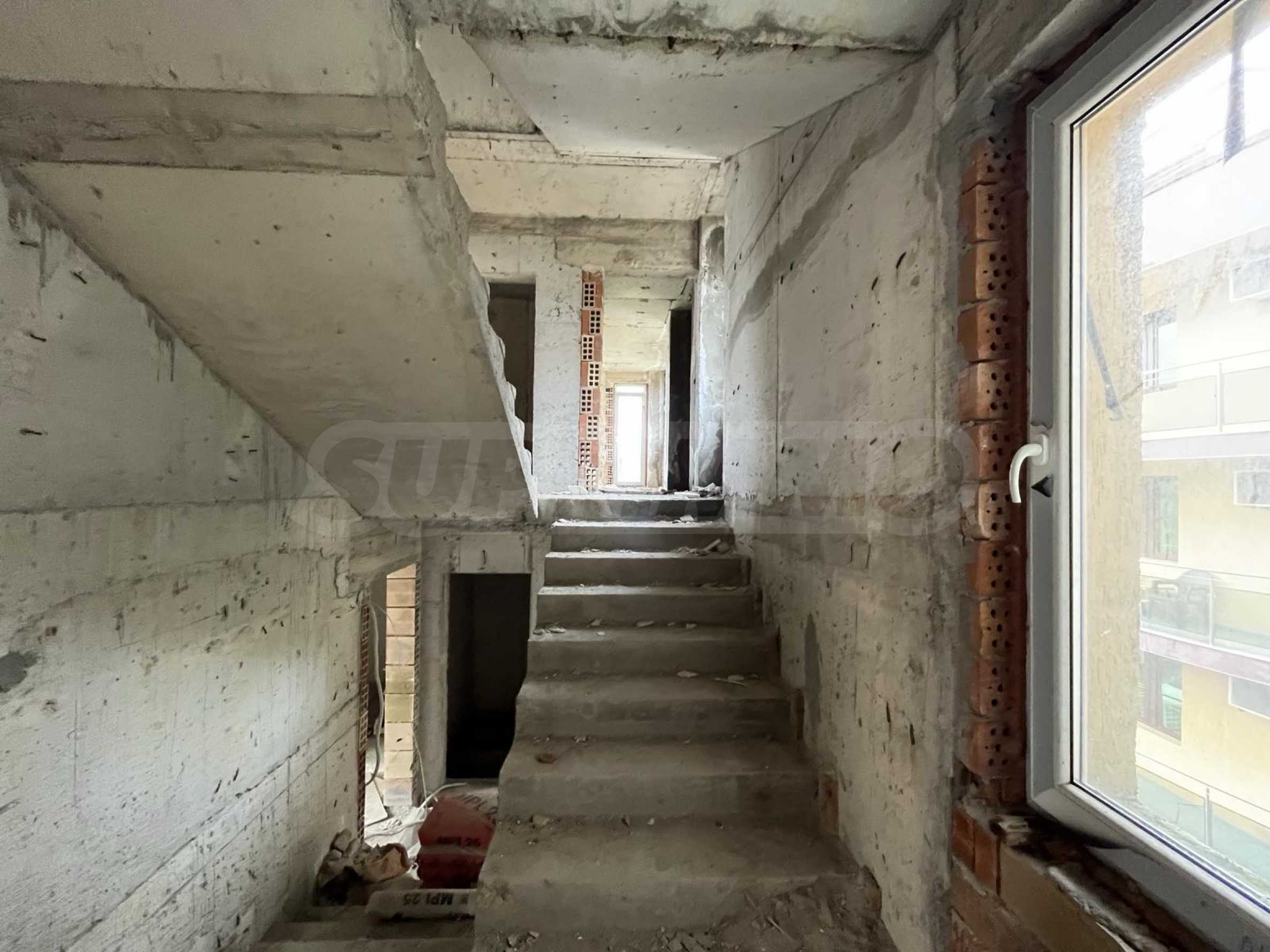 Здание имеет стандартную черновую конструкцию с установленными столярными изделиями и внешней штукатуркой. Оно представляет собой готовую инвестиционную модель как для жилых нужд, так и для развития бизнеса, например, гостевого дома с пристроенным рестораном или для самостоятельной сдачи в аренду.