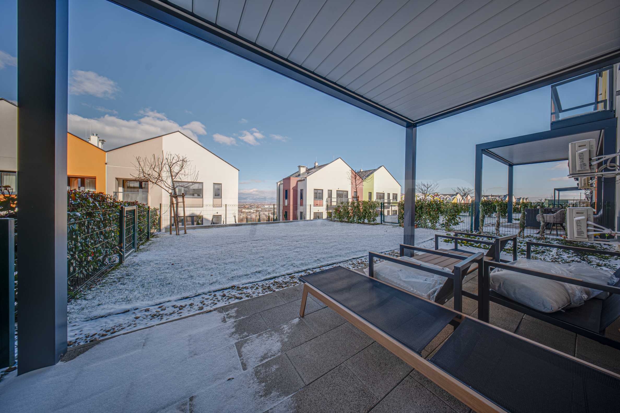 Дом совершенно новый, с окнами на юго-восток и северо-запад. С участка открывается прекрасный вид на гору Витоша и населенный пункт.