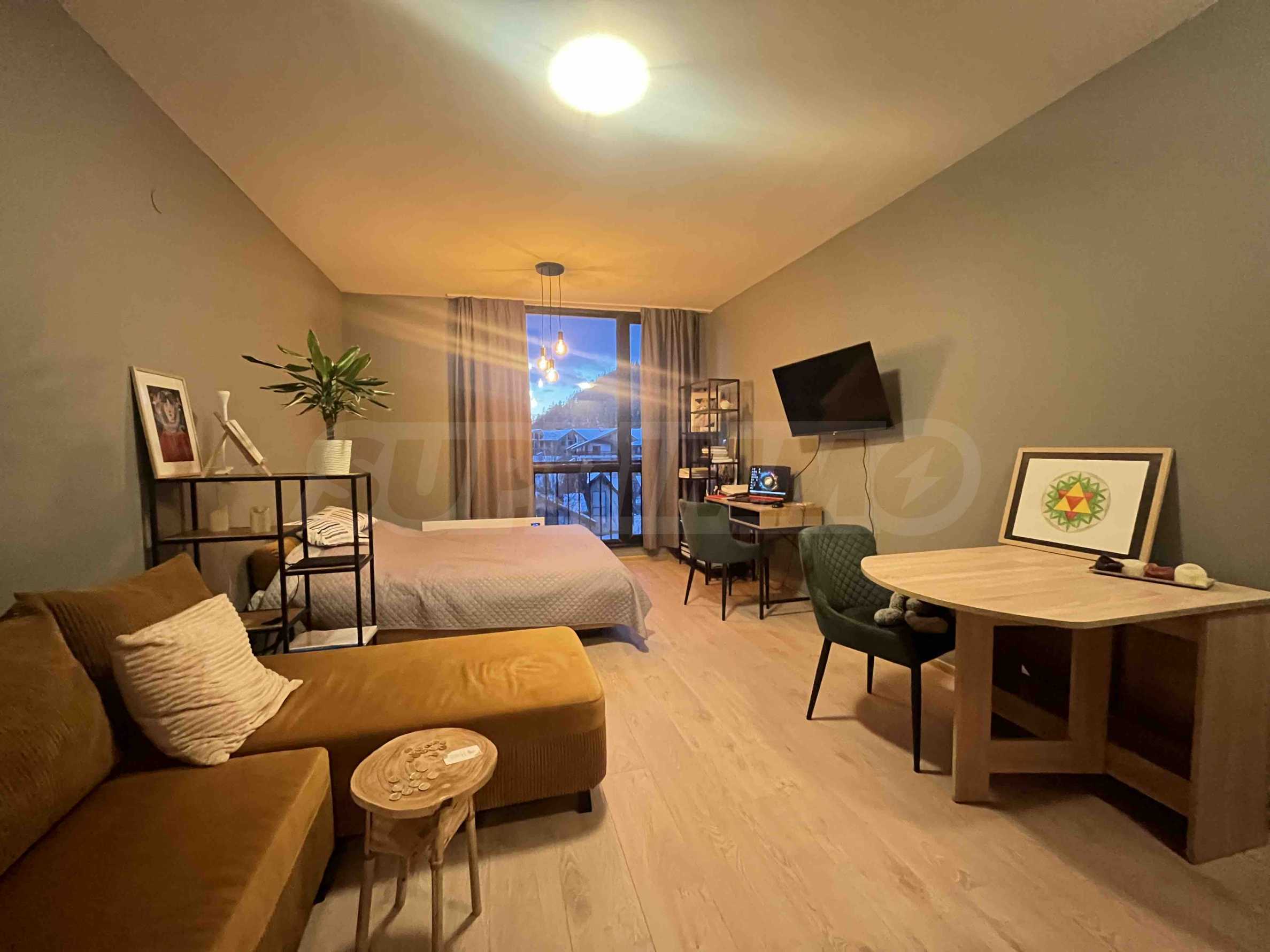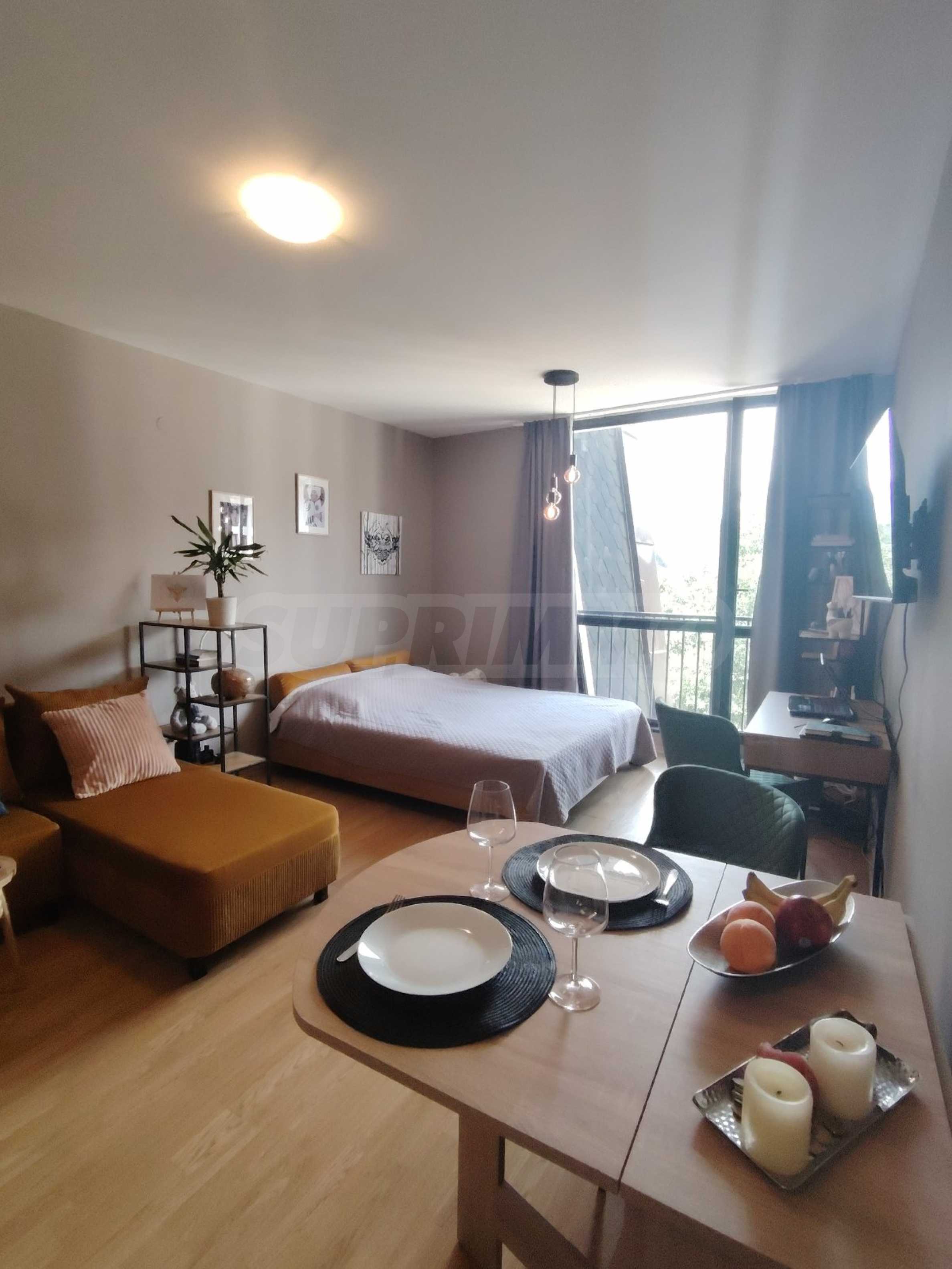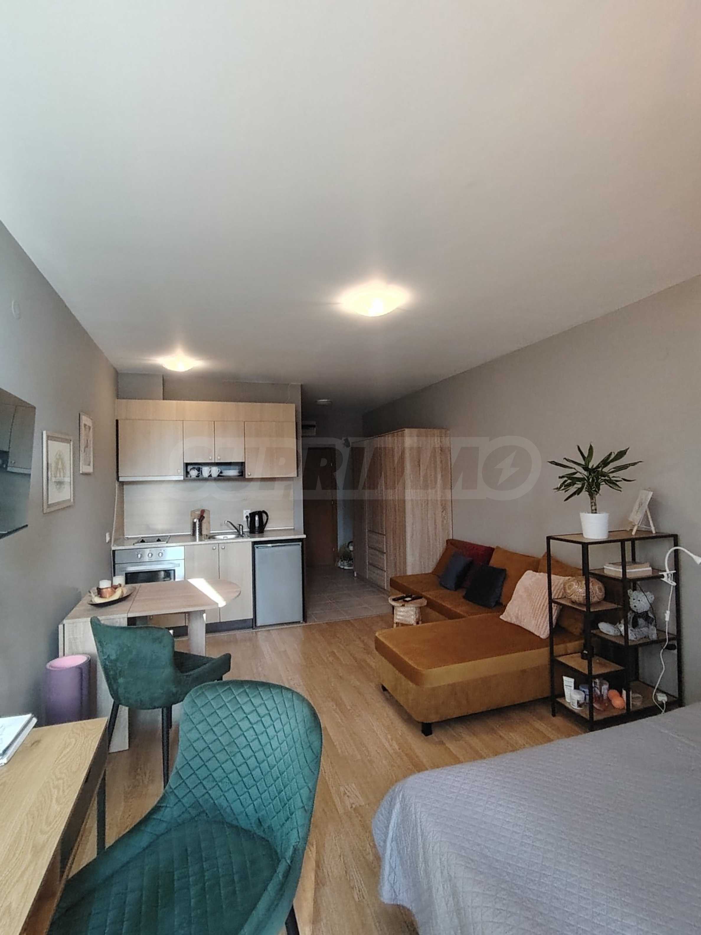 • Гостиная с спальней, угловым диваном, оборудованной кухней, обеденным столом;