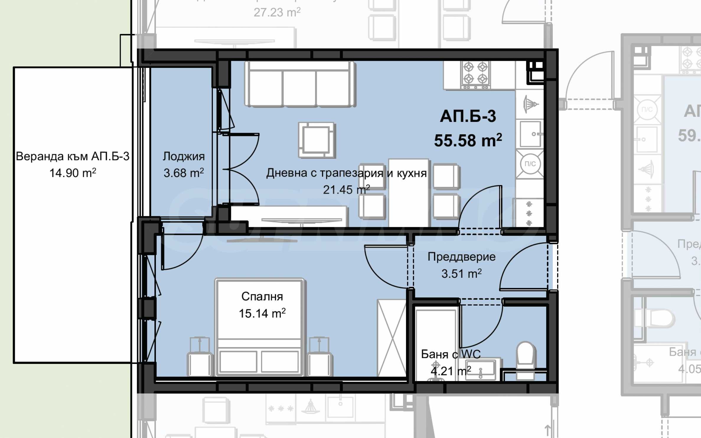 Представляем двухкомнатную квартиру в инновационном и масштабном жилом комплексе, расположенном в одном из самых востребованных и быстро развивающихся районов Пловдива — квартале «Христо Смирненски». Местоположение гарантирует отличную транспортную доступность — в пешей доступности находятся гребная база, торговый центр «Пловдив», крупные больницы, школы, детские сады и остановки общественного транспорта. В то же время, оно предлагает тишину, безопасность и ощущение отдельного, спокойного мира в черте города.