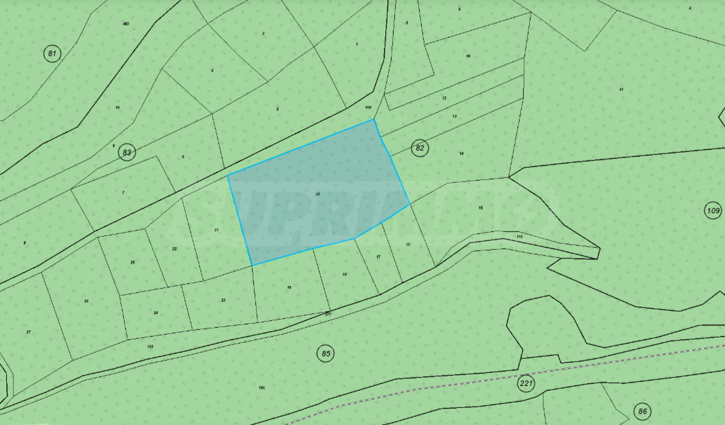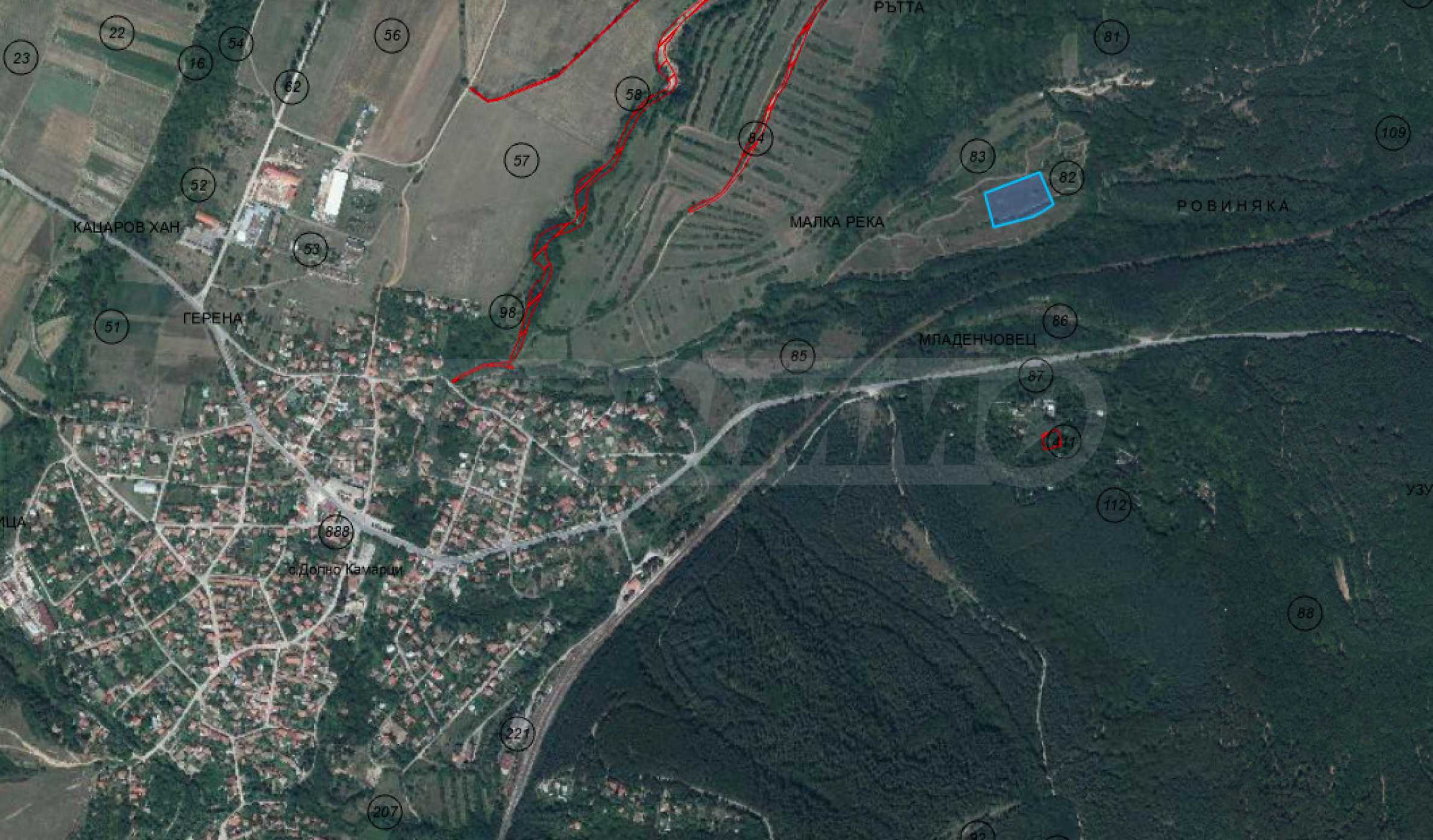 Предлагаем к продаже сельскохозяйственный участок площадью 6 202 кв. м, расположенный в районе муниципалитета Горна Малина, села Долно Камарци, Ровиньякской области.